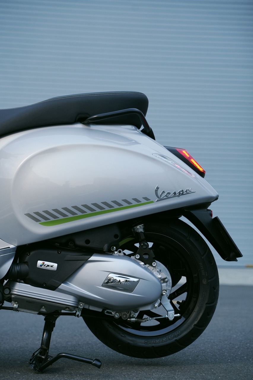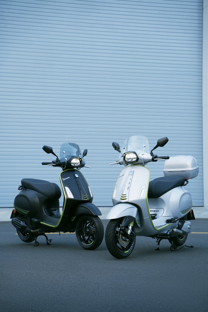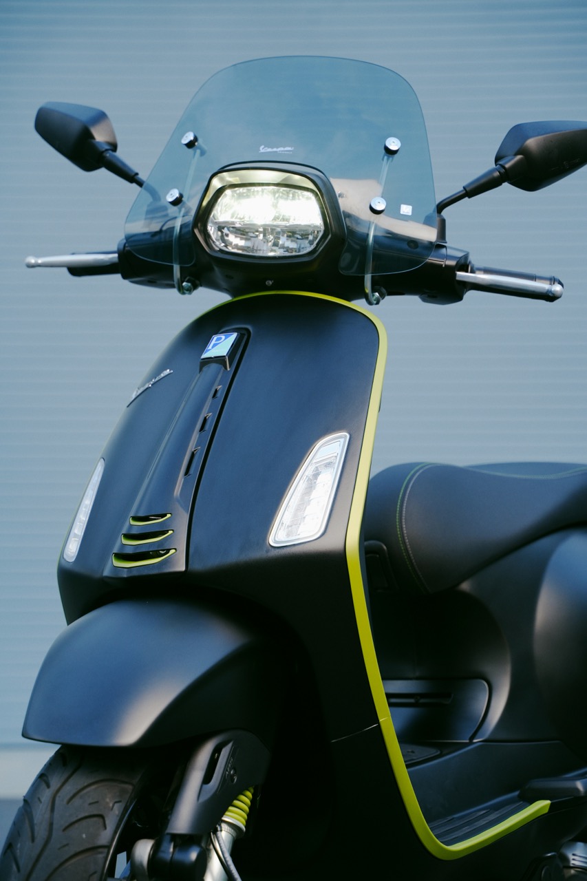 The 2025 Sprint Tech maintains Vespa’s design philosophy while incorporating modern technology. New lighting elements on both sides of the leg shield backplate activate when using the “Bike Finder” function or starting the scooter. This two-wheeler is currently available in black, warm grey, and fluo-green.