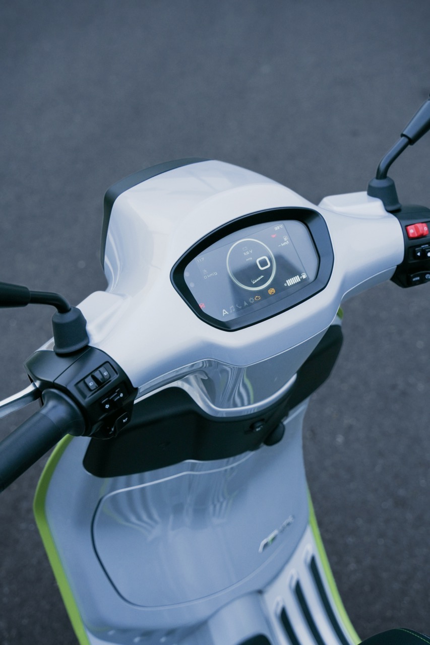 For the first time in a Vespa, an integrated navigation system is also featured. Once a destination is set via the Vespa Mia app, the dashboard shows real-time navigation details including estimated arrival time, distance remaining, current route, and alternative suggestions. Riders can choose destinations from recent locations and manage the entire navigation system directly from the dashboard.