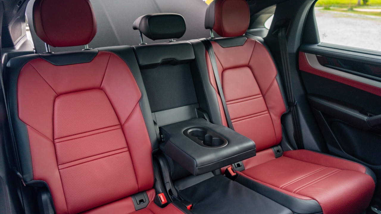• The Cayenne’s rear bench features practical 40:20:20 split, with the centre section dropping down via a simple button press at the top of the seat back.