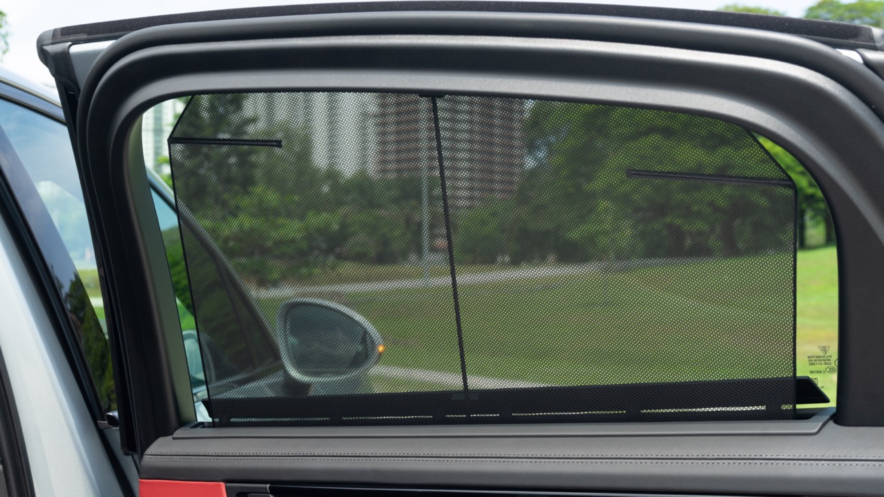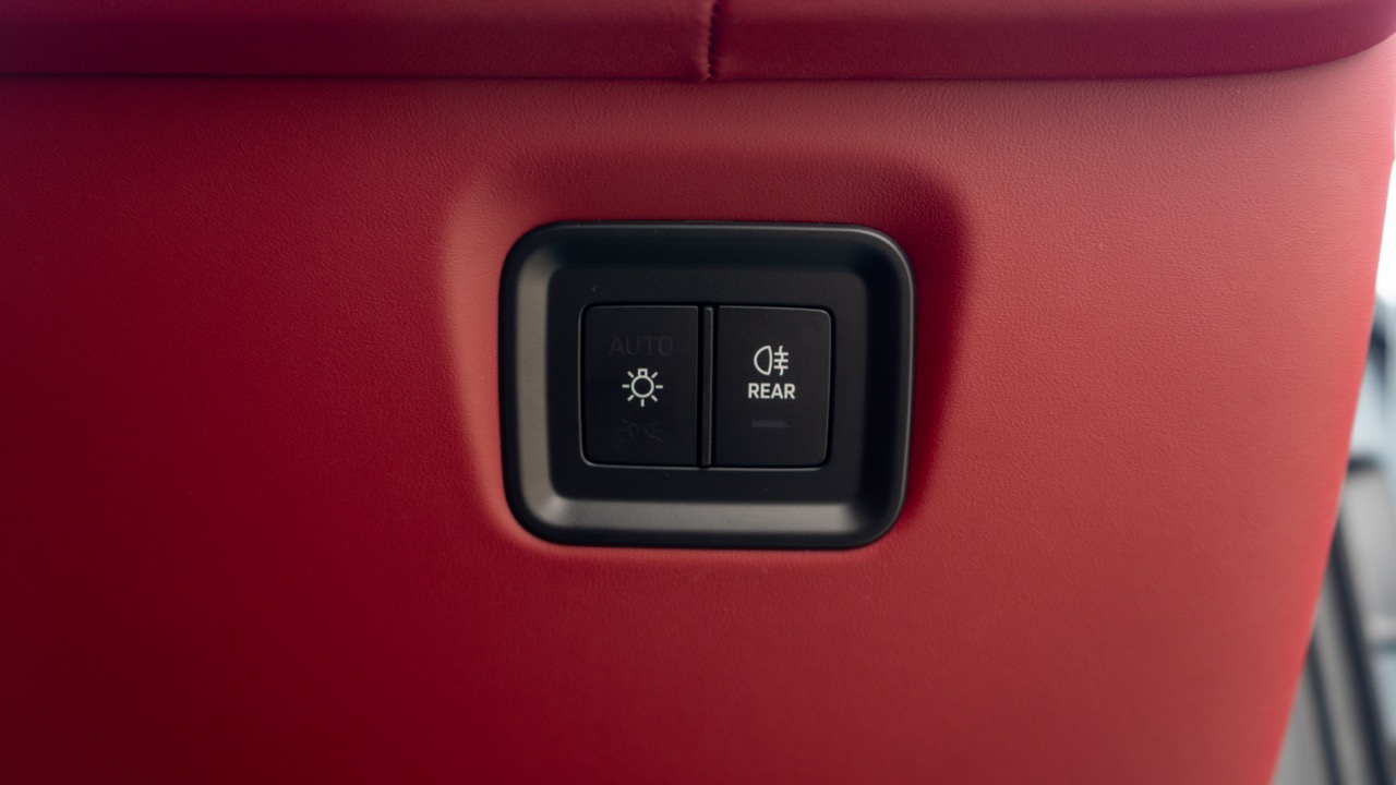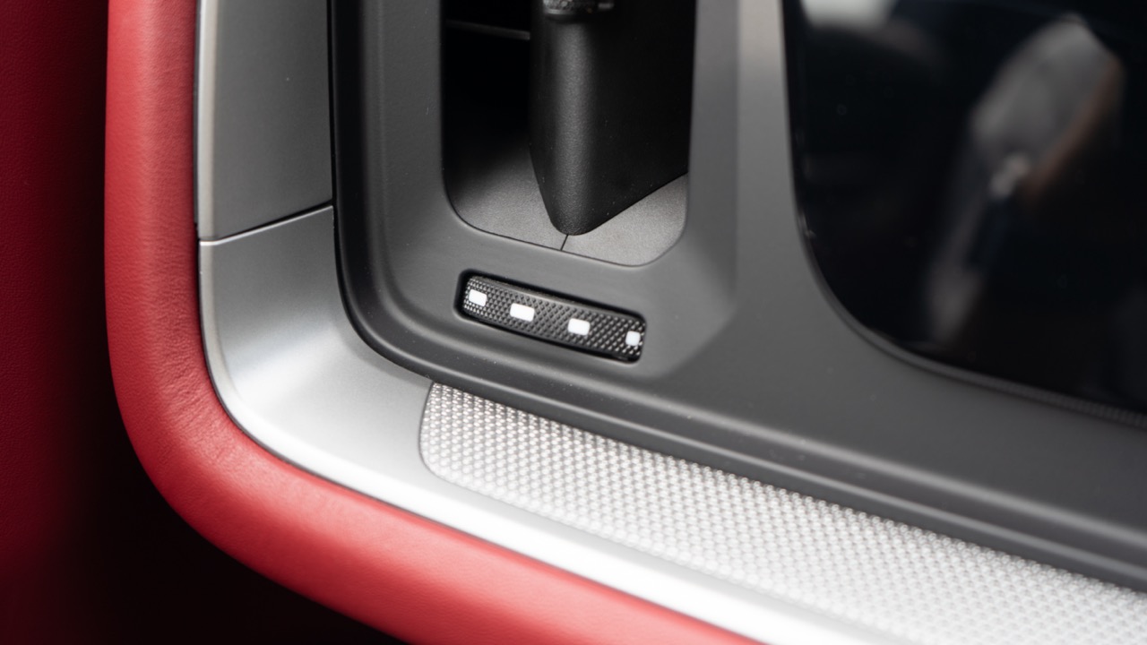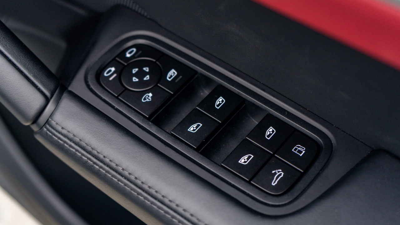 • The sunroof and front interior light buttons are haptic units, but the rear overhead lights — mounted beneath the grab handles — still use proper physical switches.