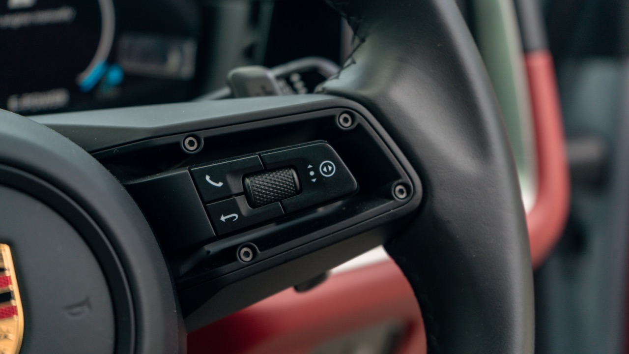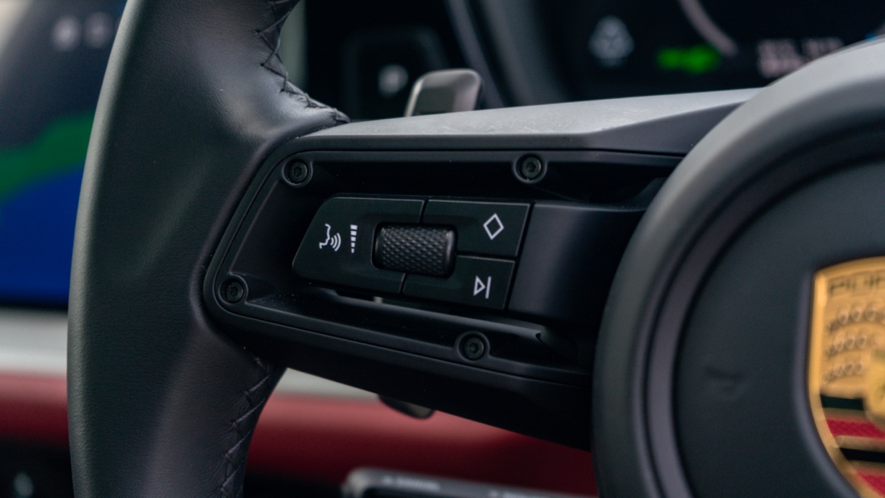 • The Cayenne’s steering wheel features only a “next track” button, with no dedicated “back track.” The quick-access key can be configured for that function, but still, it is an odd omission.