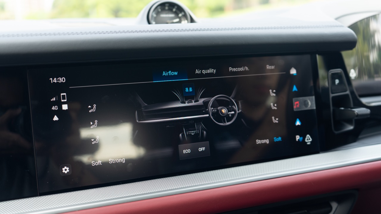 • The dash-top air vents on the Cayenne offer only lateral (left/right) adjustment, with their open/close function controlled through the infotainment screen. The rest of the vents meanwhile retain traditional scroll wheels to control the air flow coming out of them.