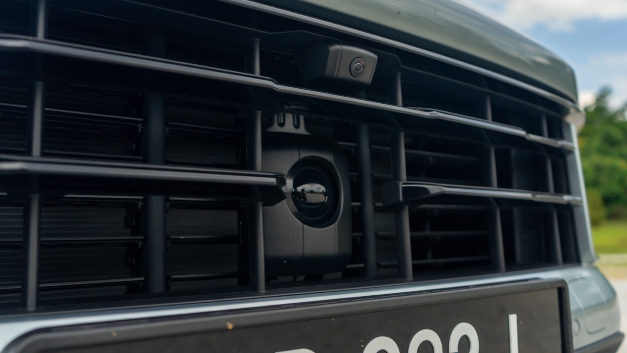 • The ADAS sensing module sits front and centre within the Cayenne’s grille, and isn’t exactly subtly integrated. The unit itself also resembles the black dome-shaped CCTV cameras often seen in shops.