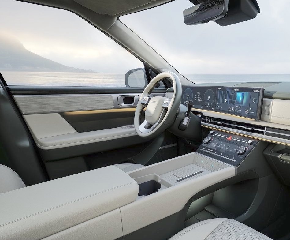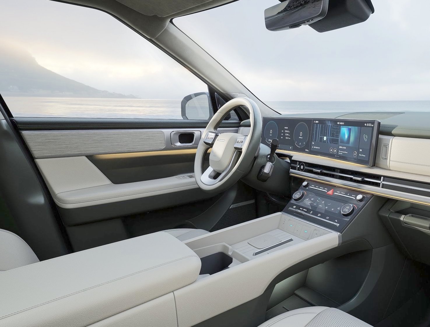 The refined interior offers a pleasant surprise by contrasting with the strong exterior. The interior design emphasizes horizontal and vertical lines, with an H-motif design applied to the dashboard and air vents to enhance the sense of openness and create a unique sensibility.