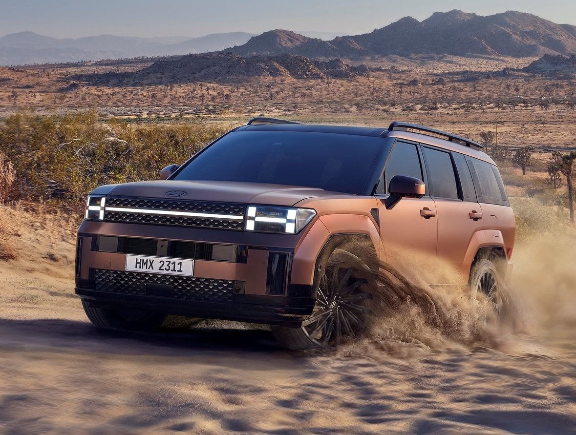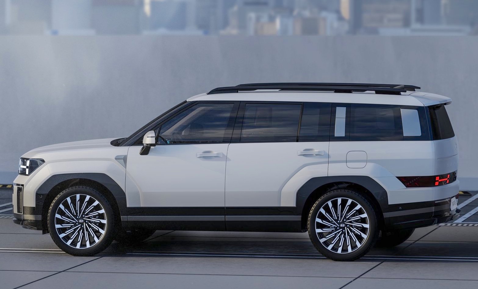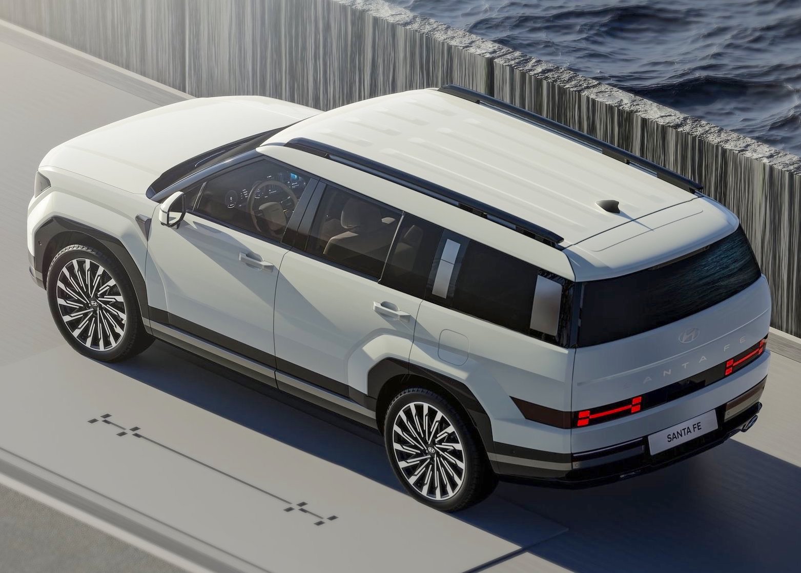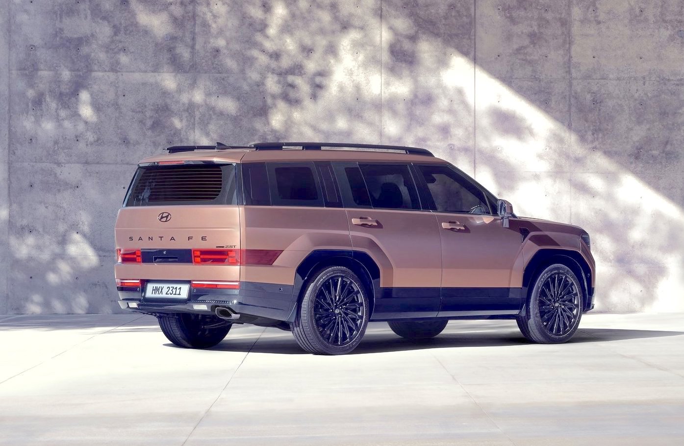 The all-new Hyundai Santa Fe’s boxy shape and distinctive silhouette are derived from its long wheelbase and wide tailgate area.