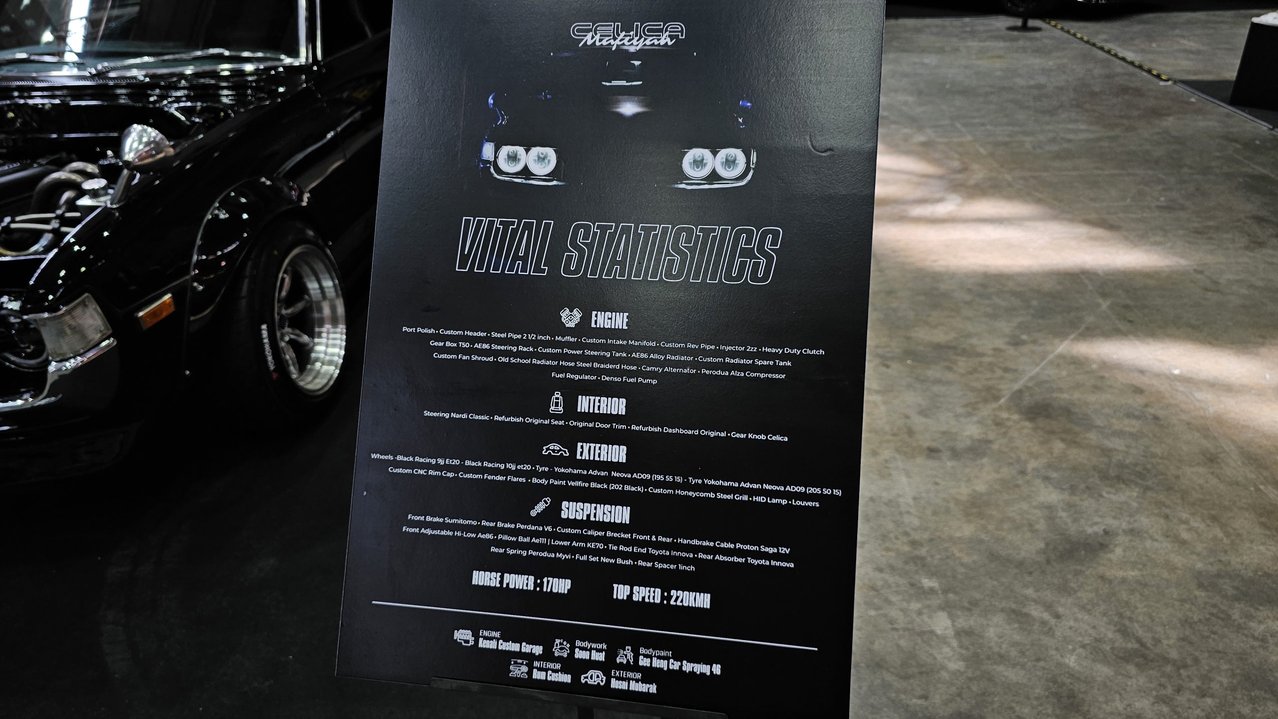 The Toyota Celica Mafiyah, featuring a 4A-GE 20-valve black top to match its jet black paint.