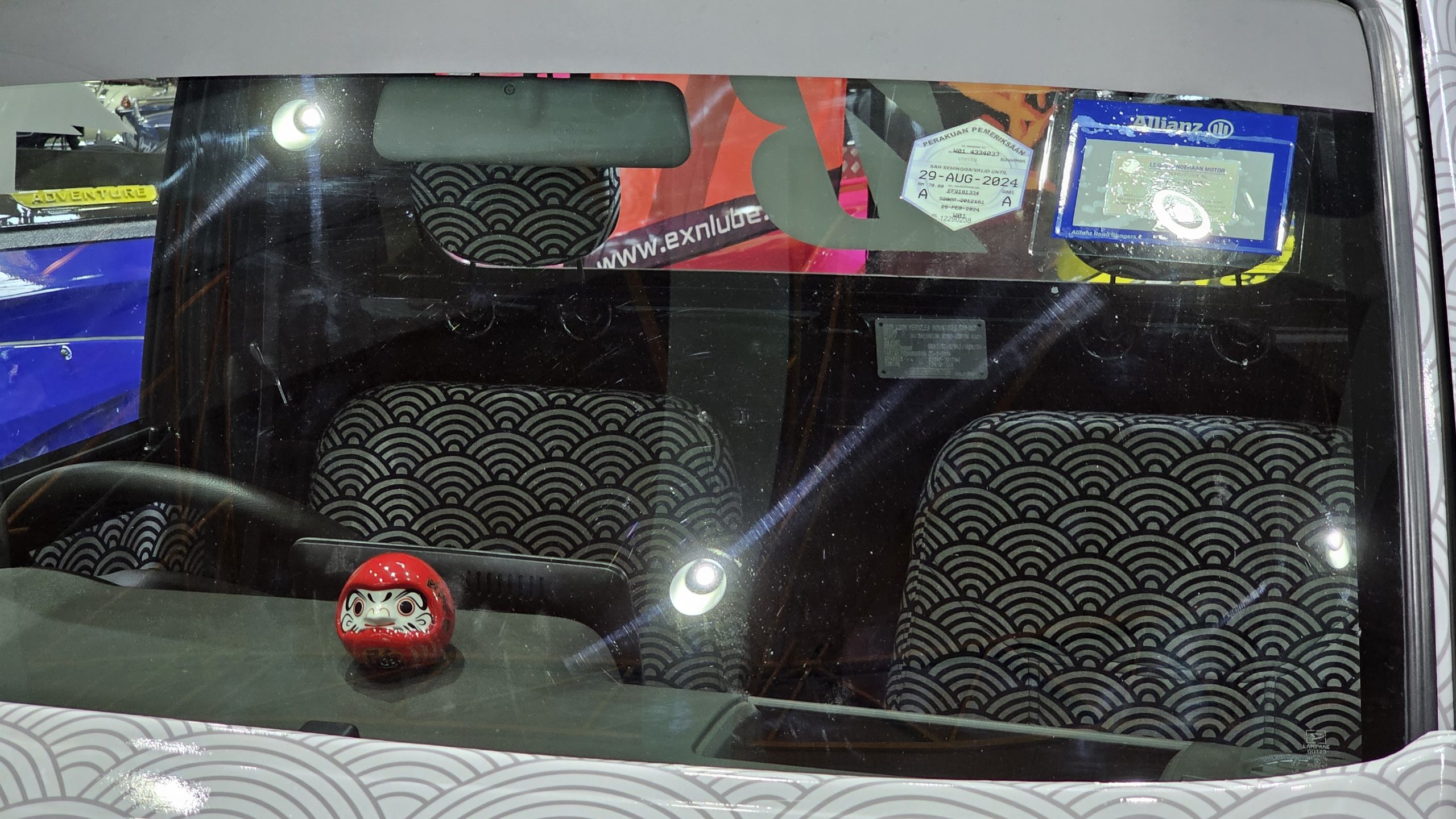 An itasha (car decorated with images of characters) dekatora (decorated truck) keijidosha (kei car). The subtle wave pattern used for the base livery and interior upholstery is actually rather neat too.