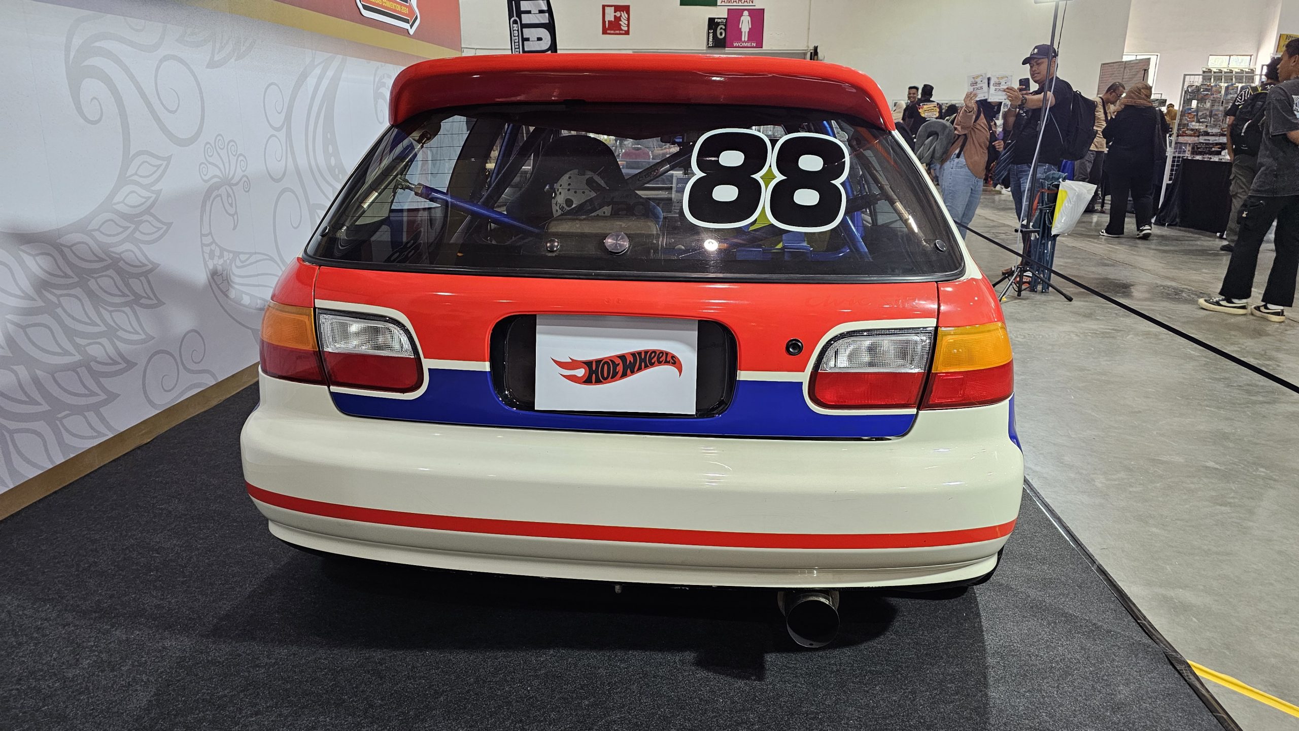 The star car of the 2nd Official Hot Wheels Collectors Convention Malaysia — a red, white and blue liveried Honda Civic with a retro Turbo script down the side.