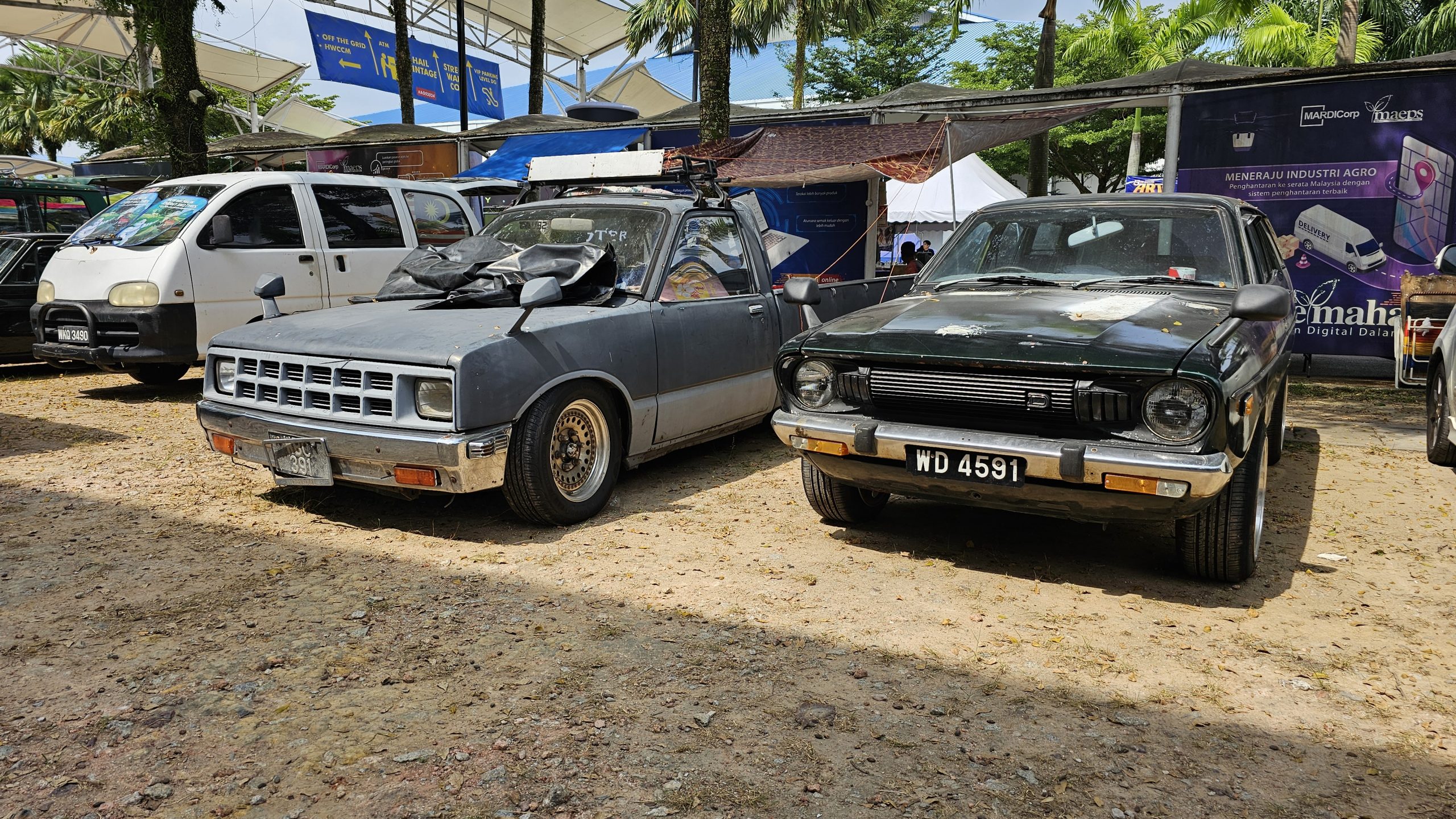 …and around the corner from that too is a mustard yellow Datsun Sunny California, with the old style Malaysian number plates.