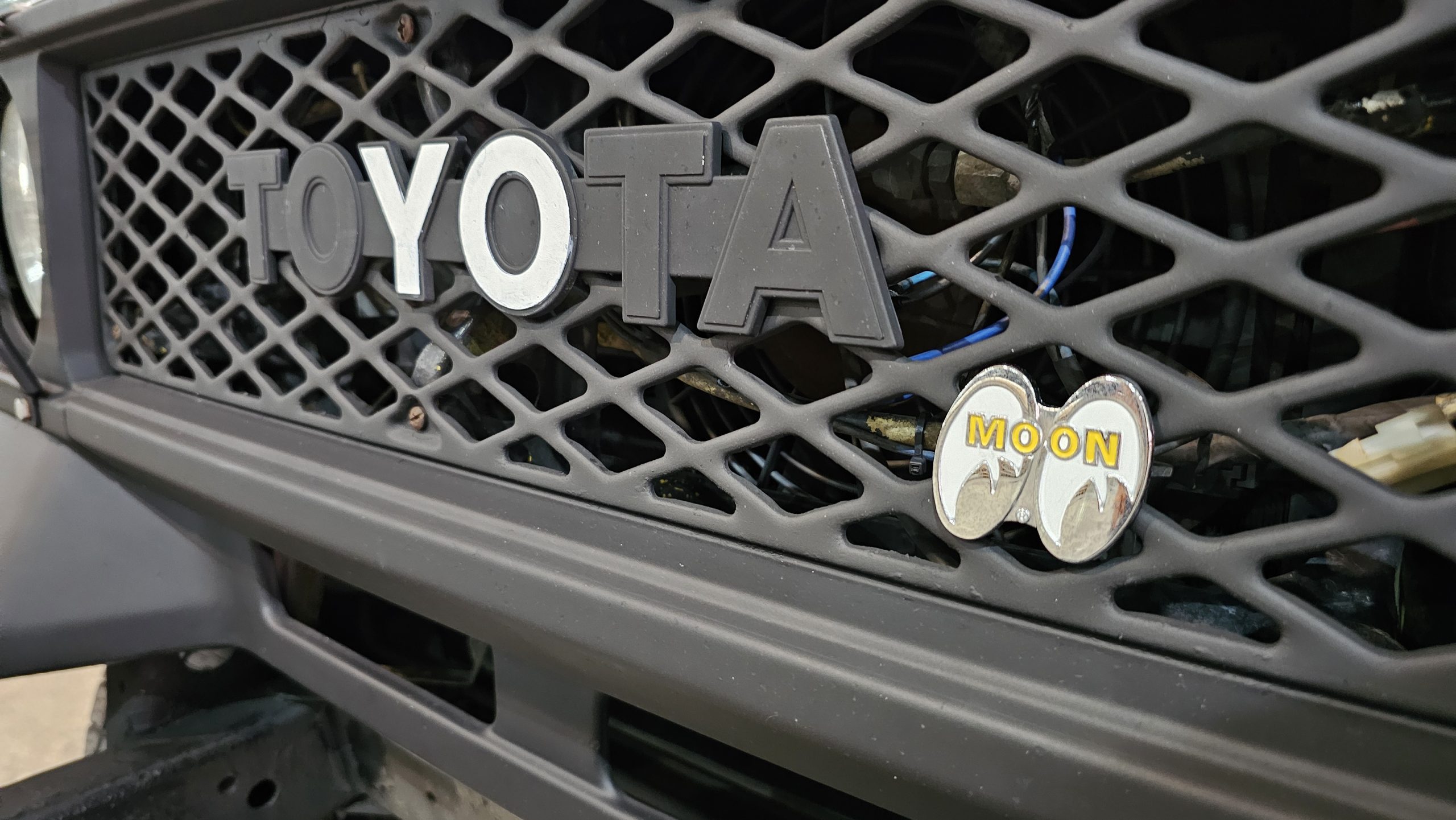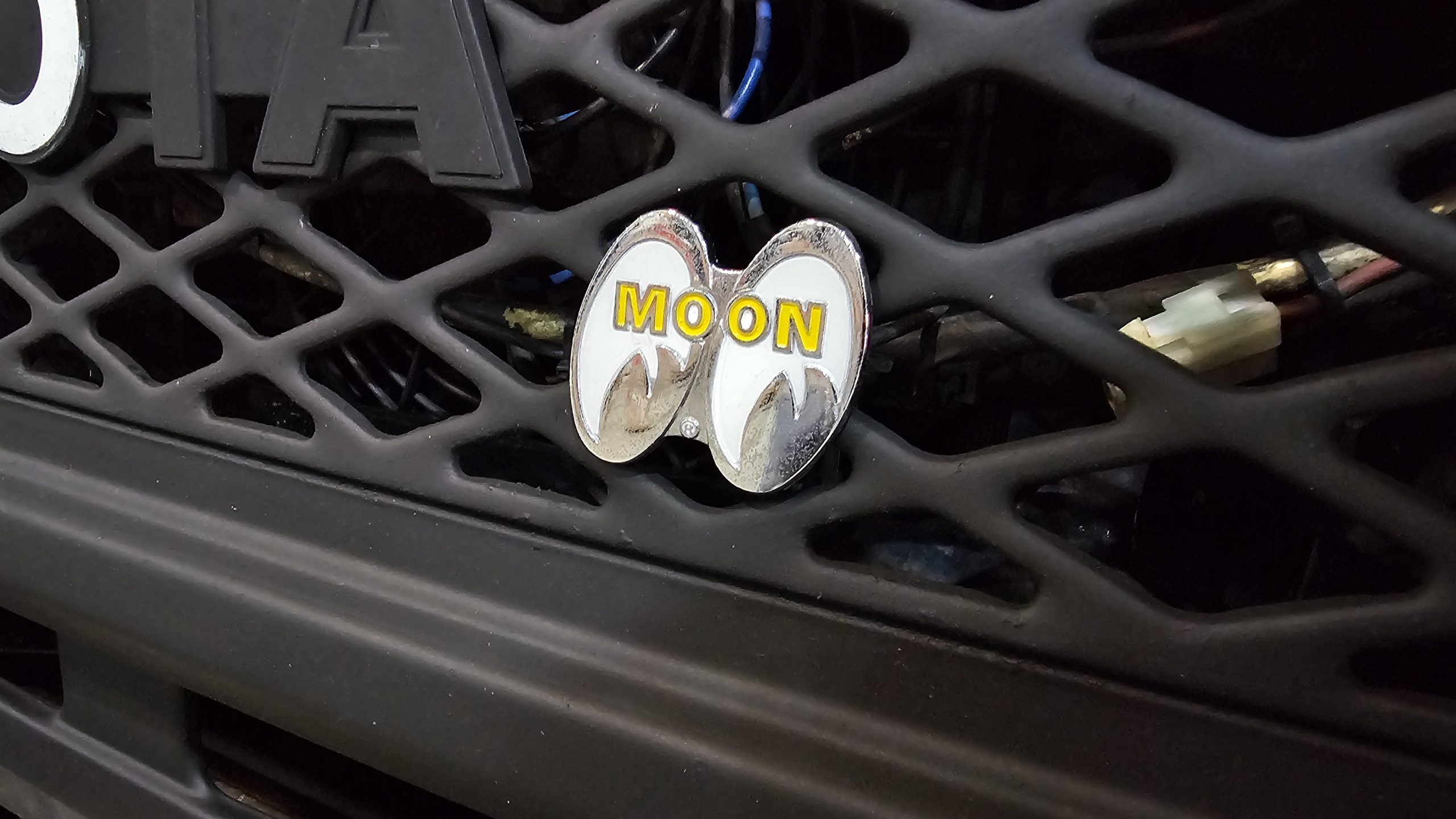 Moondisks on a Mooneyes-themed Honda kei van, as emphasised by the cover on its roof top tent.