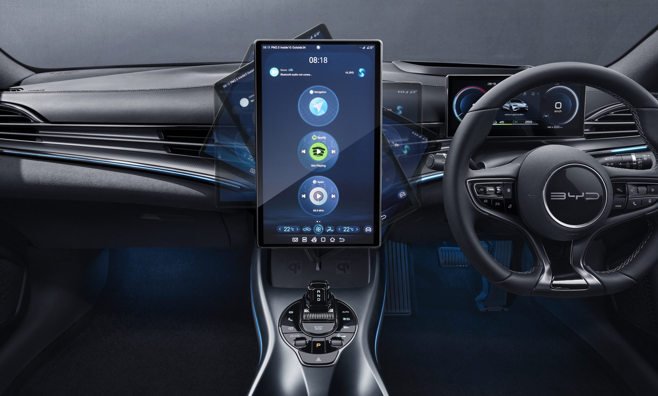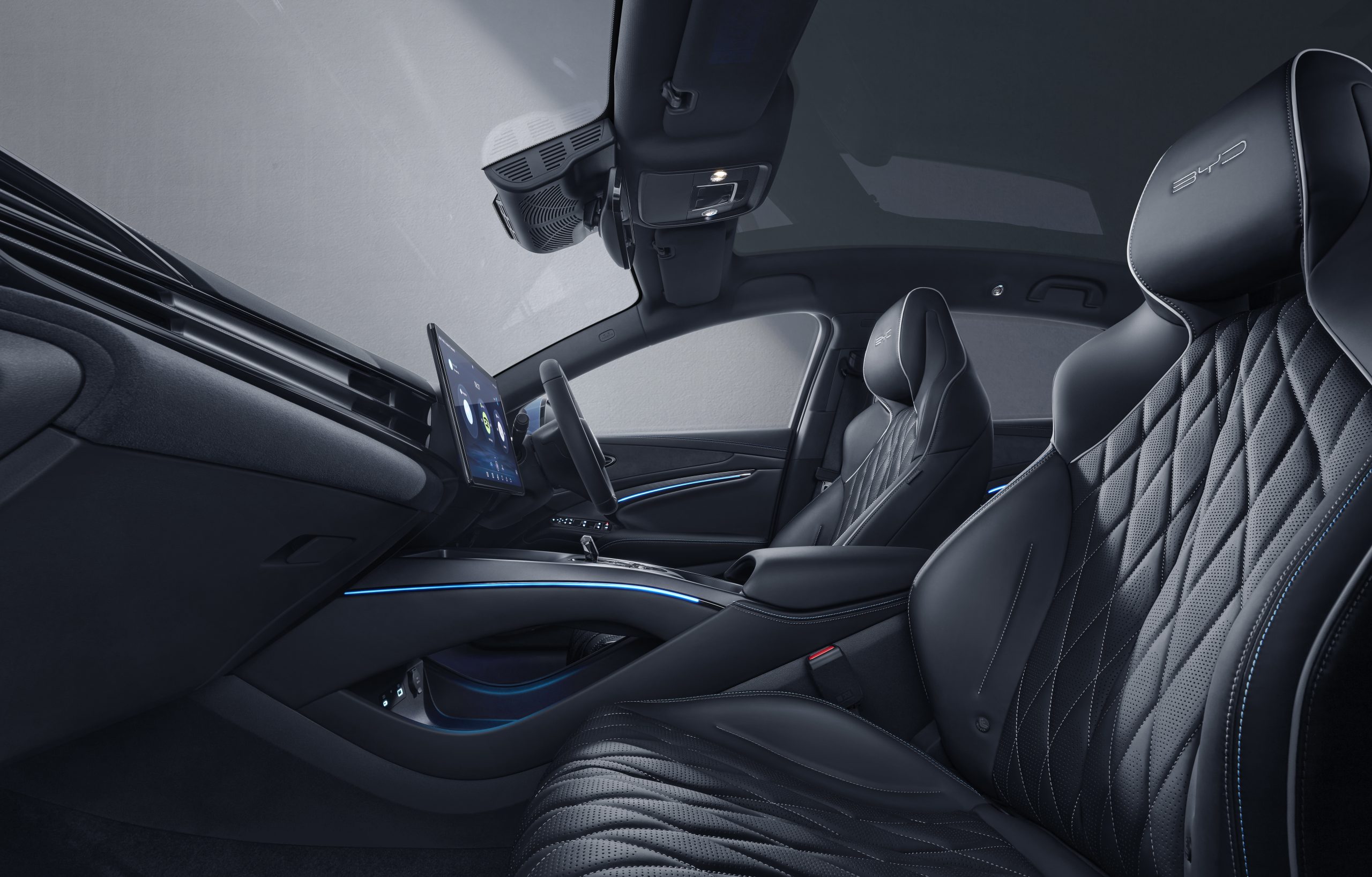 Turning towards the inside of the Seal, a 15.6-inch rotatable central touchscreen (with wired Apple CarPlay/wireless Android Auto integration) and a 10.25 digital instrument display with a heads up display precedes a pair of heated and ventilated sporty-looking bucket seats. This particular BYD also nets a 12-speaker Dynaudio premium sound system, dual wireless charging pads, a panoramic glass roof and dual-zone climate control with PM2.5 filtration system as among the creature comforts within, while the 9 airbags and surround view camera just scratch the surface of its long list of standard ADAS features too.