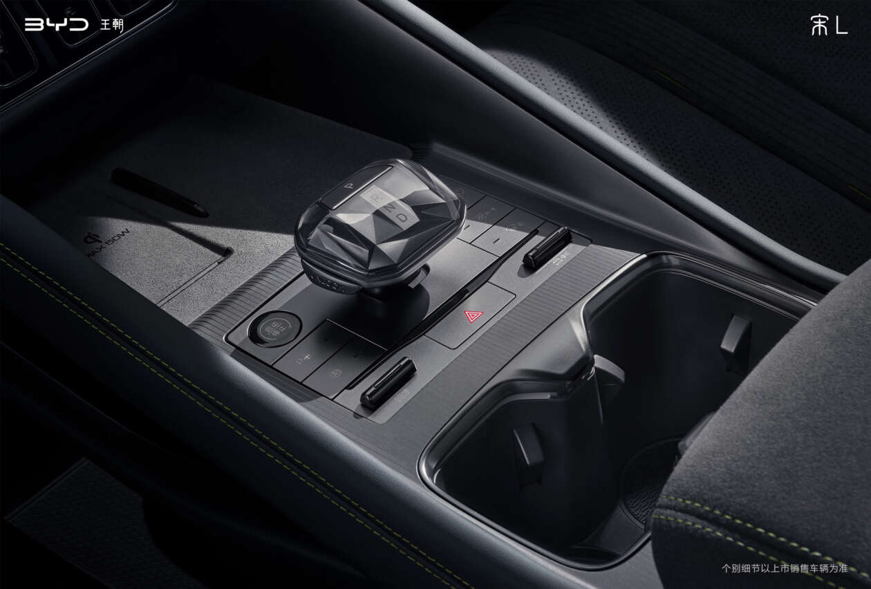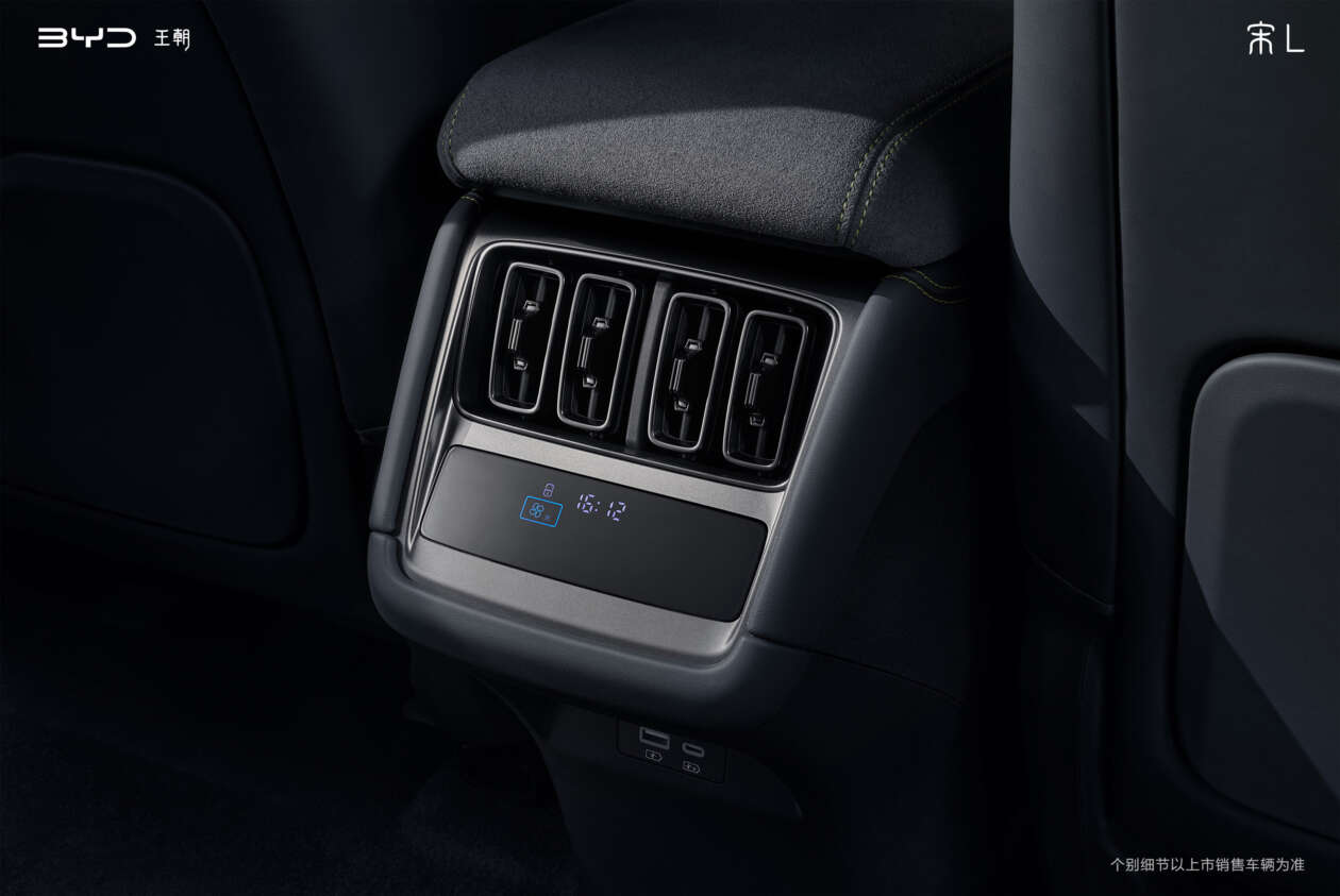 Now moving on inside, BYD’s signature 15.6-inch rotating central infotainment display and 10.25-inch digital instrument cluster is to be complemented by a 50-inch heads-up display that is all running the new generation DiLink system. Other interior highlights of the Song L include perforated Alcantara and leather upholstery on its sports seats, a crystal gear selector, Dynaudio speakers, dual wireless charging pads and a full-width panoramic roof on the top-tier variants.