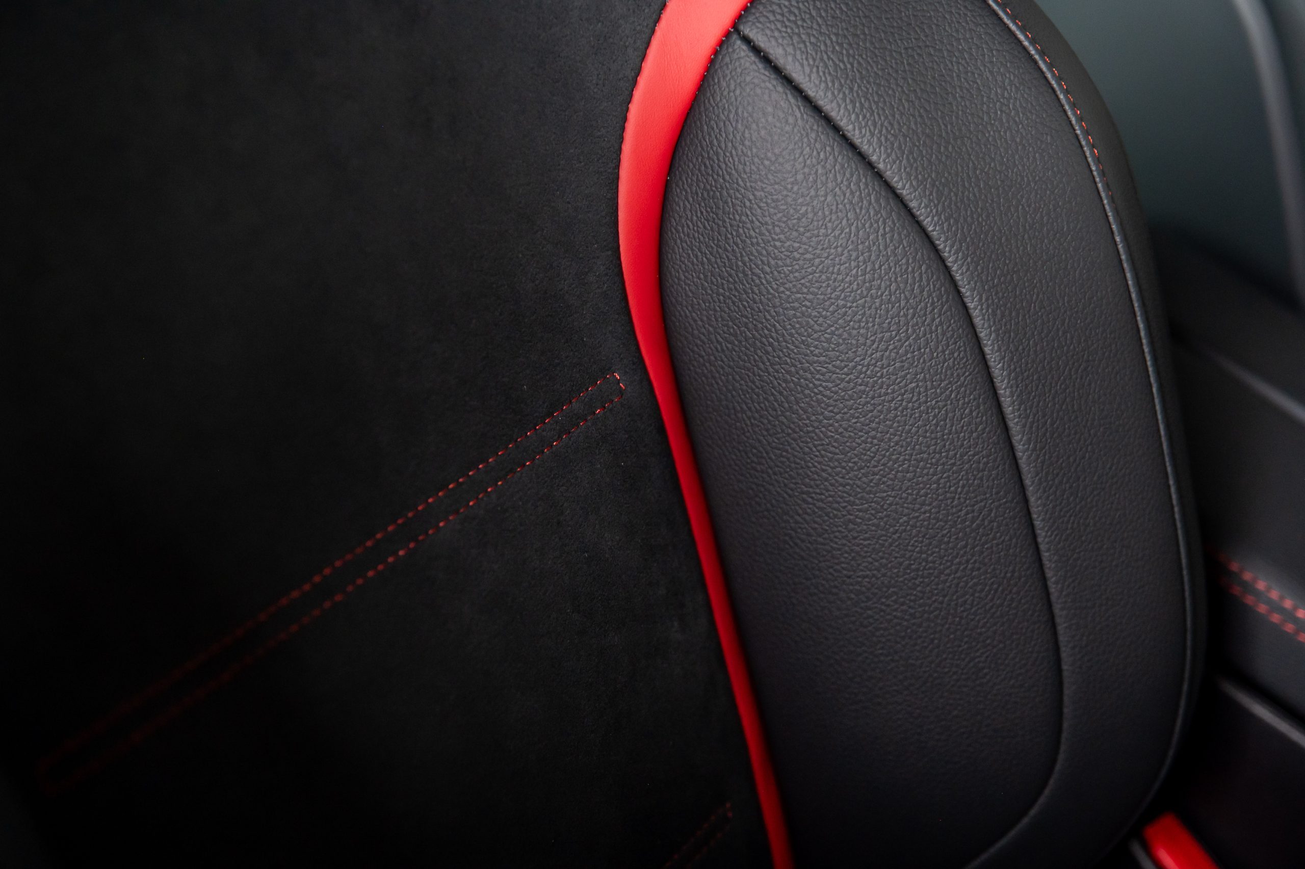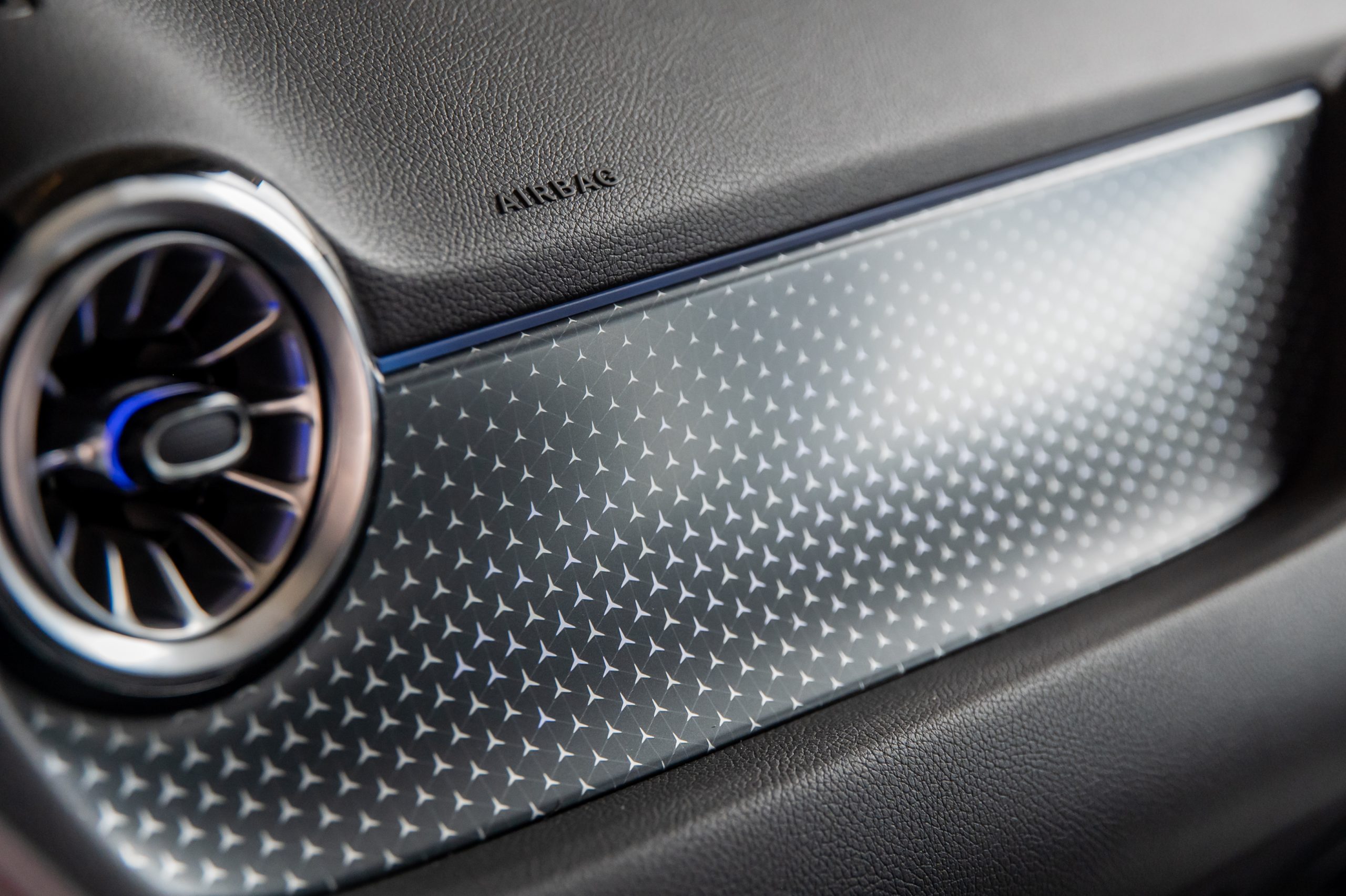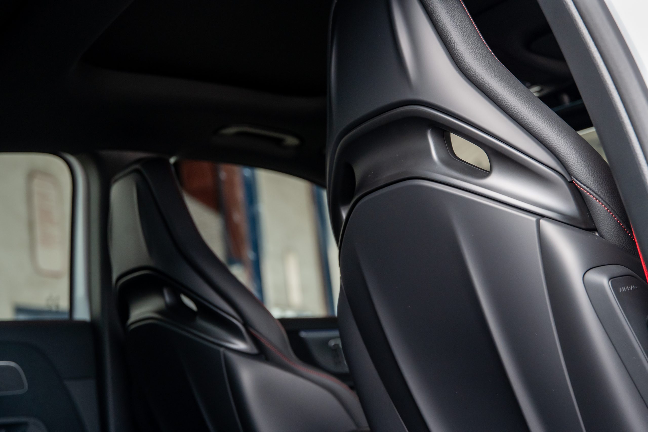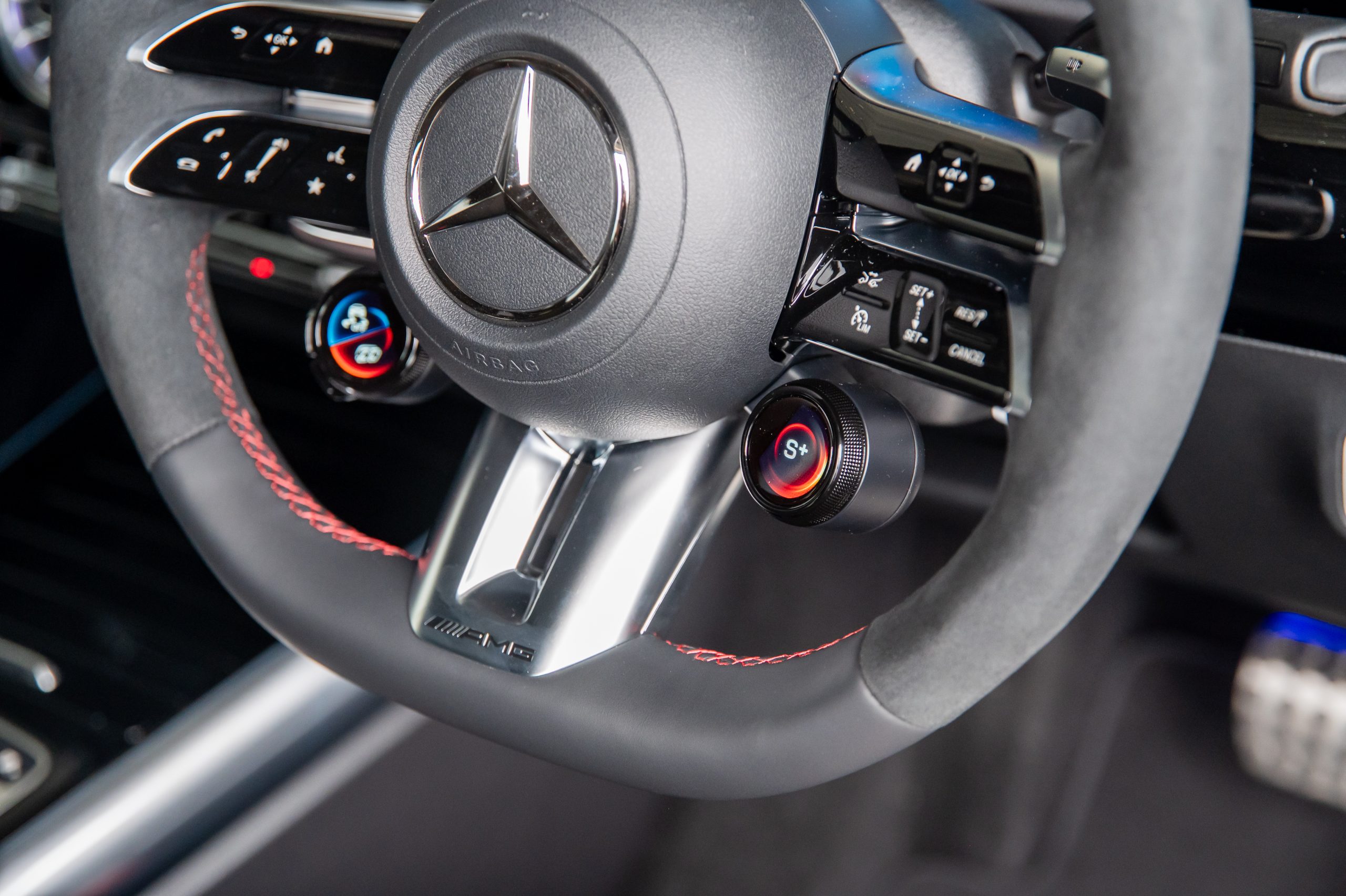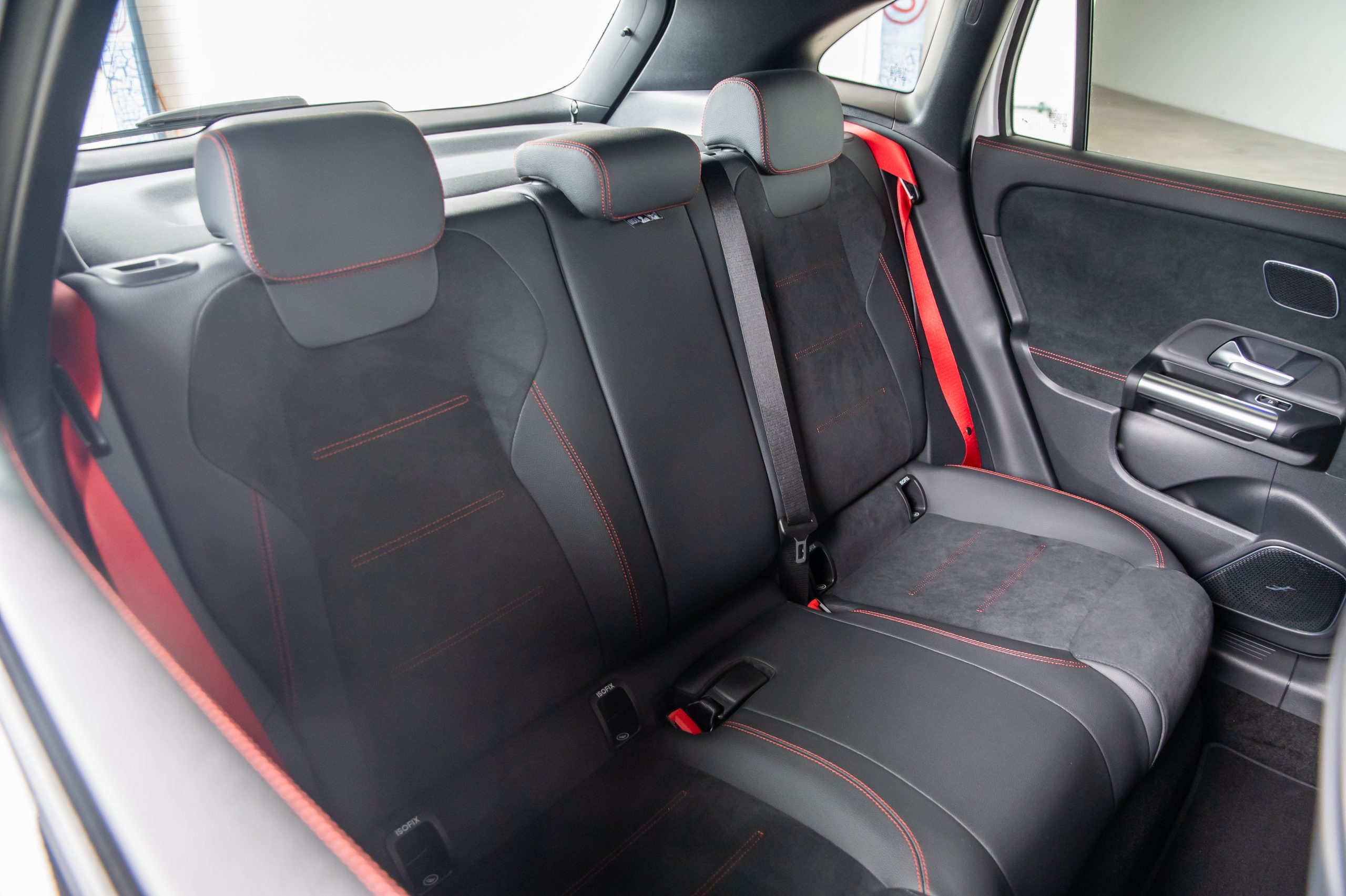Moving on within, the sensation of sportiness in this updated GLA 45’s interior comes by way of the latest generation of the AMG Performance steering wheel in Nappa leather/MICROCUT microfibre and a pair of AMG Performance front seats upholstered with ARTICO man-made leather/MICROCUT microfibre. This is then further enhanced through with some sporty red seat belts, before being finished off by AMG floor mats and illuminated AMG door sills.