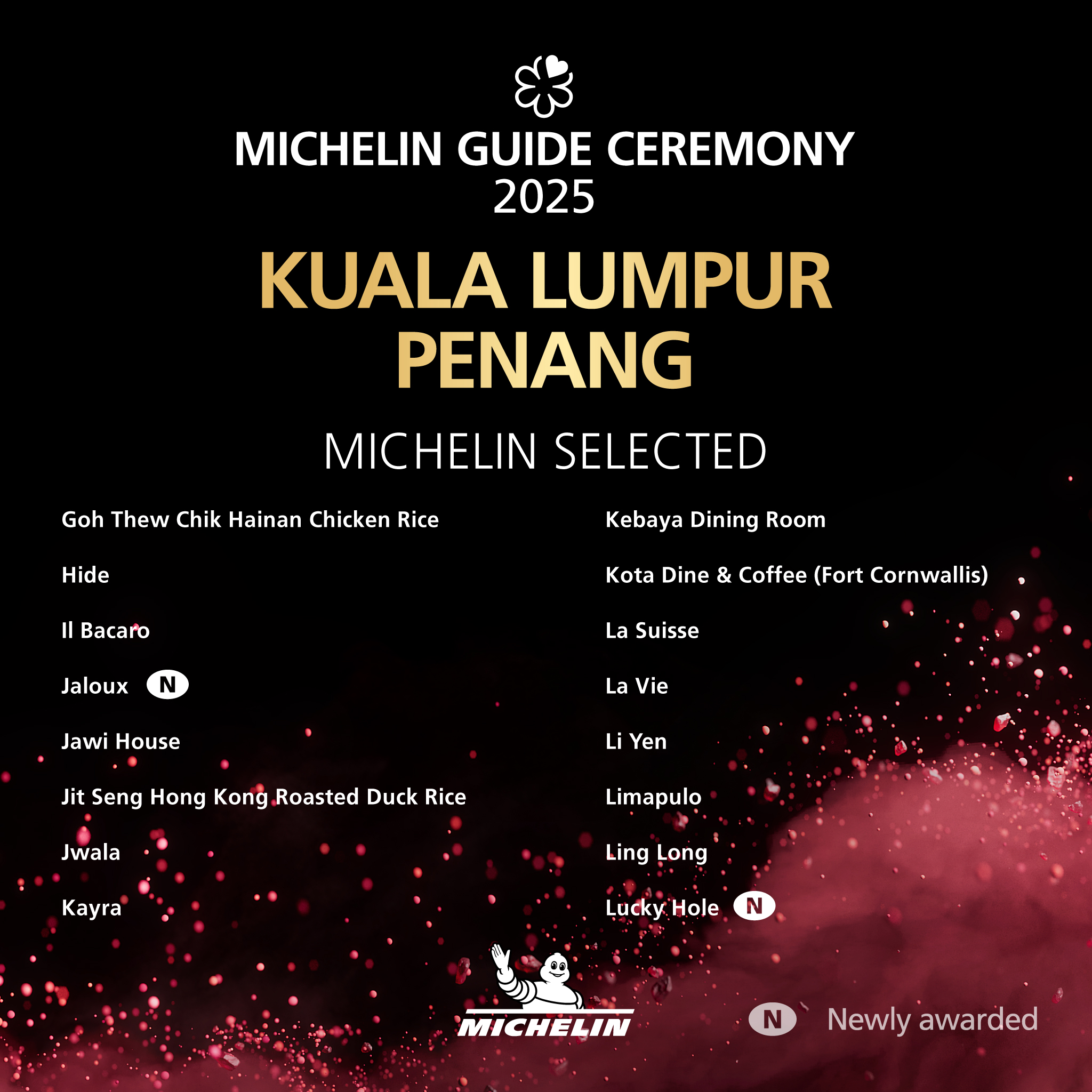“As we reveal the third edition of the Michelin Guide Kuala Lumpur & Penang 2025, we are truly impressed by the remarkable progress of Malaysia’s culinary landscape. It’s inspiring to see two new restaurants earn one Michelin Star, and the addition of 12 new Bib Gourmand establishments showcases the rich diversity of local flavours. From preserving cherished family recipes to embracing sustainability with our first Michelin Green Star restaurant, these establishments reflect the heart and soul of Malaysia’s culinary heritage. We are excited to celebrate the passion, creativity, and dedication that make this country’s cuisine special,” says Gwendal Poullennec, International Director of the Michelin Guide.