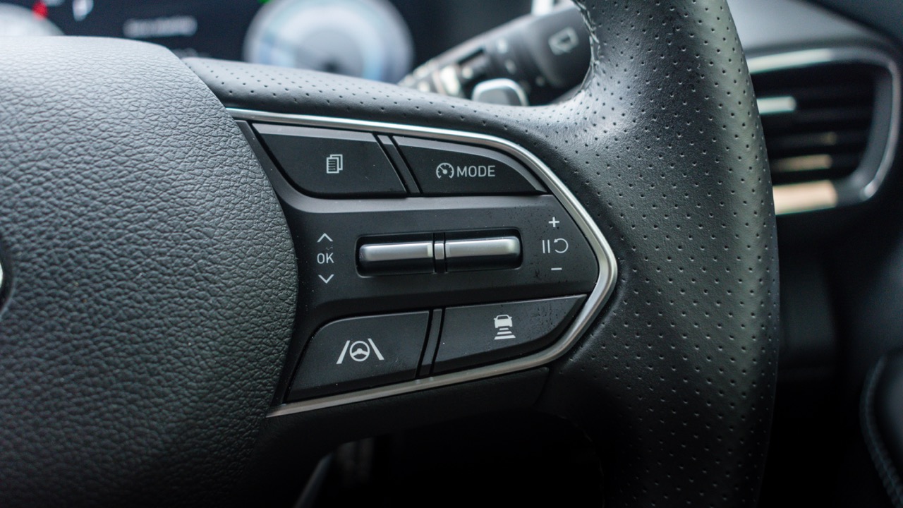 - The Santa Fe has ‘Auto Steer’ as its own dedicated button, independent of cruise control, which is more handy than you might think. Such is as there are actually many occasions where you can allow the car to steer itself, while you yourself manage the pedals, like following closely in stop start traffic for instance, or wanting to gently accelerate up to a cruising speed.