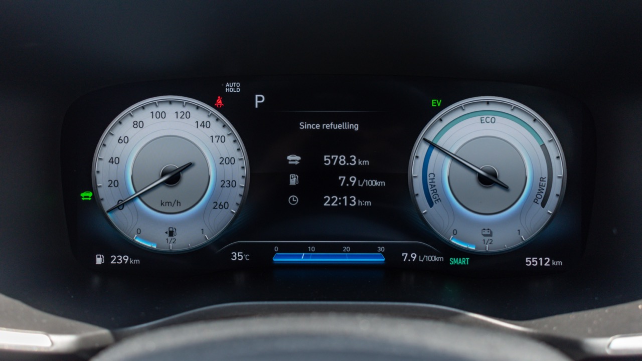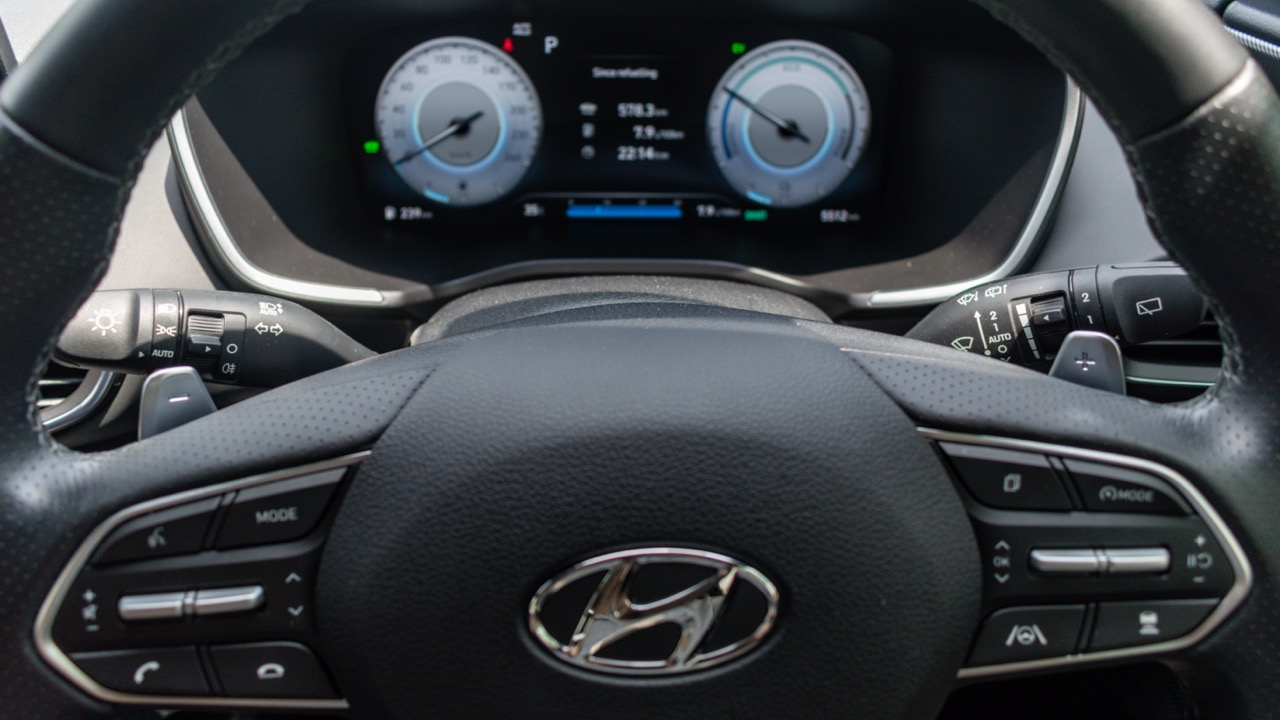 - Comprehensive suite of active driver aids, including a smooth adaptive cruise control system with auto-steer and Hyundai’s signature blind-spot camera that displays its feed on the digital dials