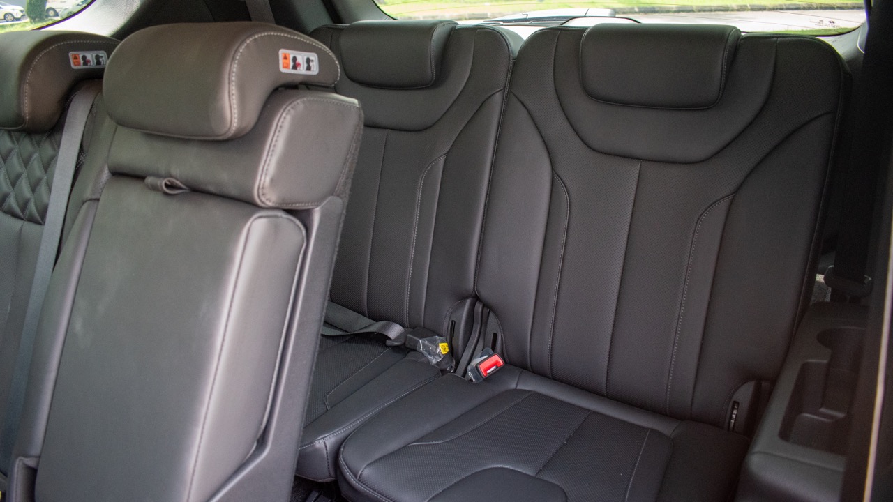 - Easy access to the third row is interestingly only available on the left seat on the second row, with a button on the side of the seat to tumble it forward.