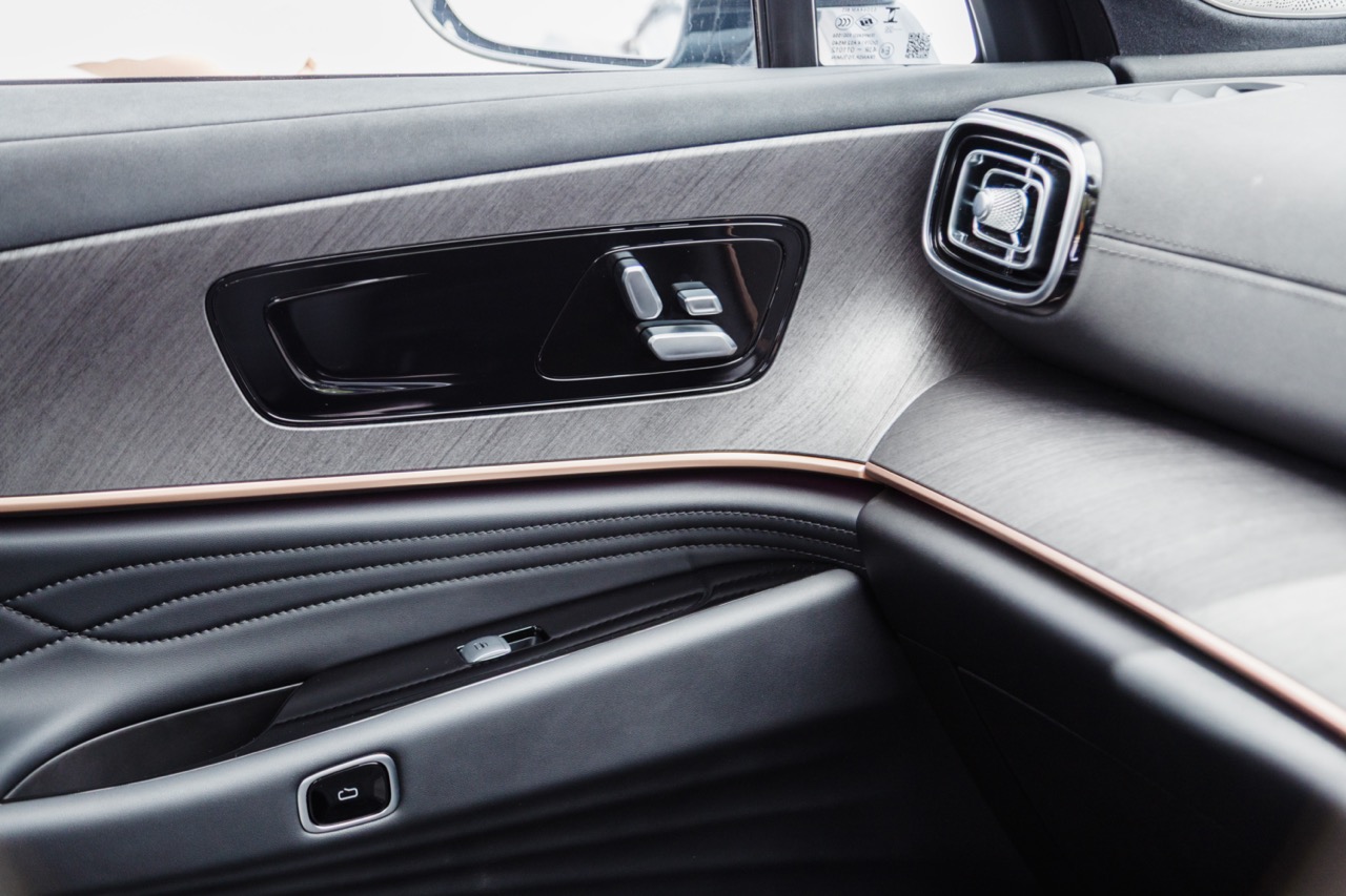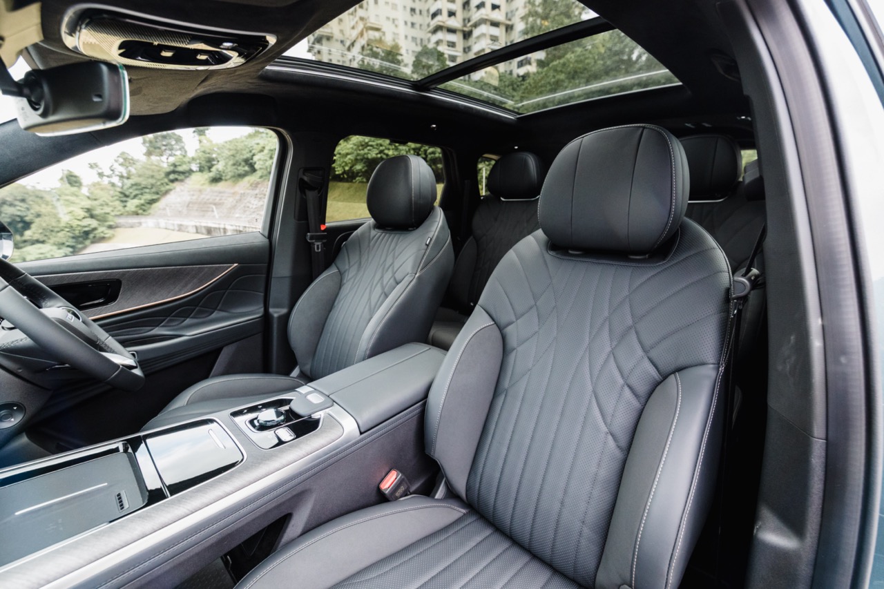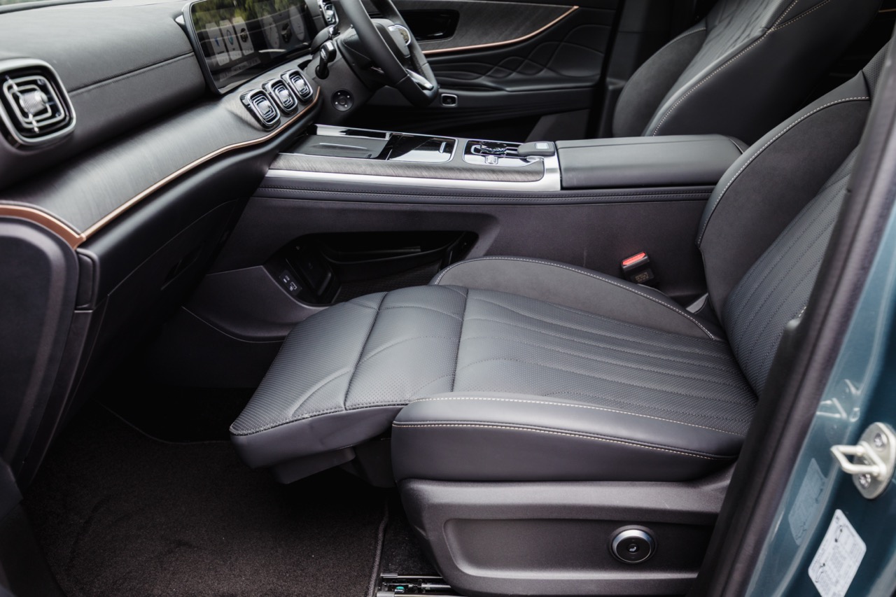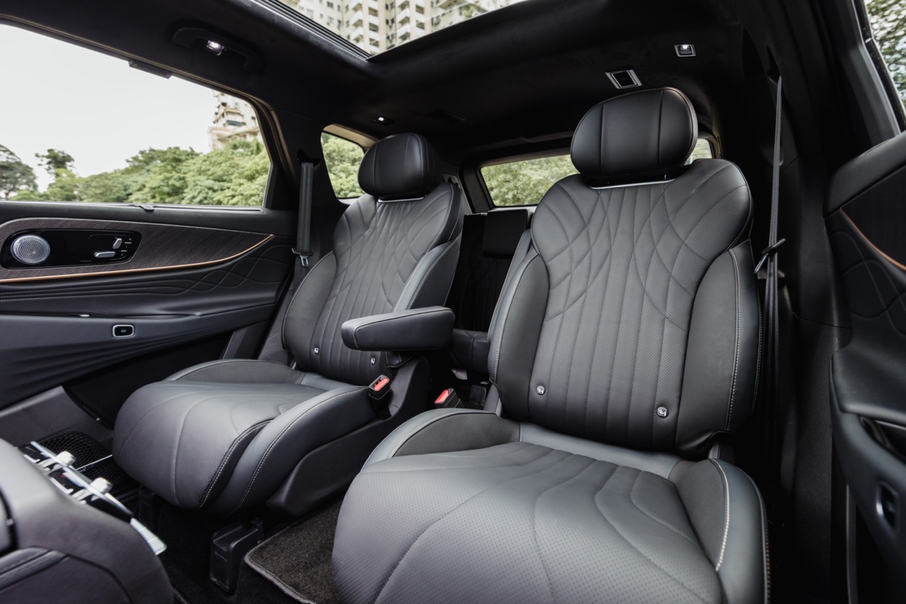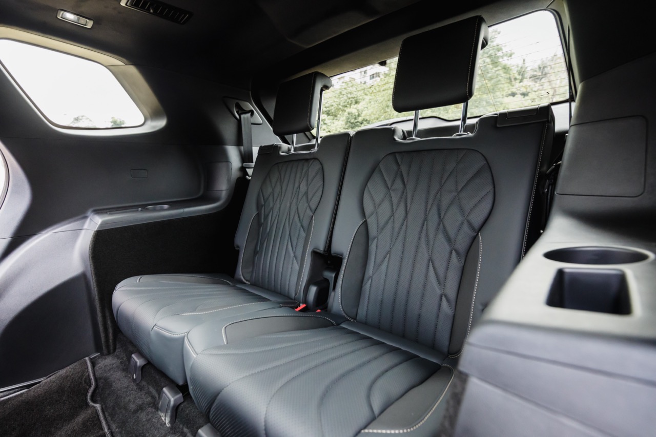 2WD J8s come with a NFC-based keyless entry system, a 12-speaker Sony sound system, six airbags, a built-in digital video recorder, 356-colour ambient lighting and faux leather upholstery. Aside from the extra row of seats, the higher-end AWD brings with it power-operated doors, an automatic fragrance system, a 14-speaker audio setup with headrest speakers, and four more airbags in total.
