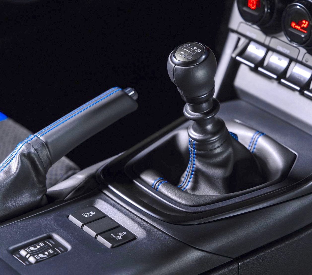 Inside, this BRZ cabin is wrapped in black upholstery with tS-only contrasting blue stitching on the front seat bolsters, leather-wrapped steering wheel, shifter boot and parking brake boot.