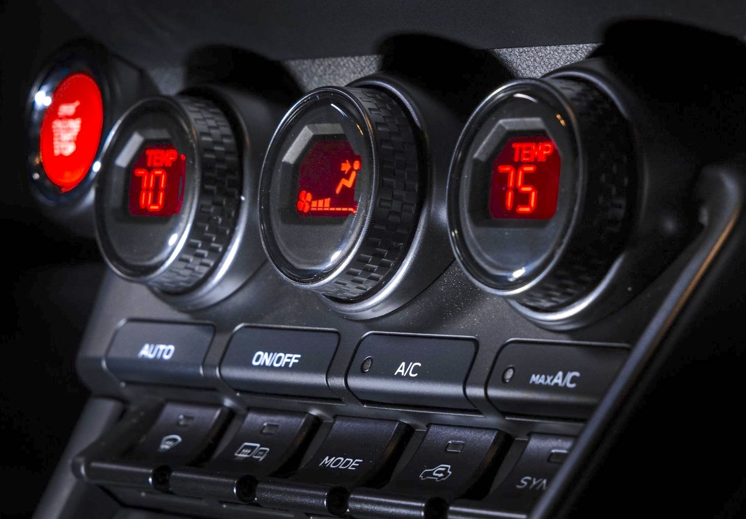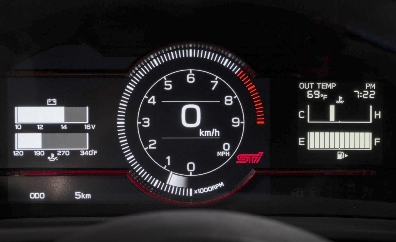 The iconic STI logo is displayed on the red starter button and customizable 7-inch digital instrument cluster, also updated with tS-exclusive red accents.