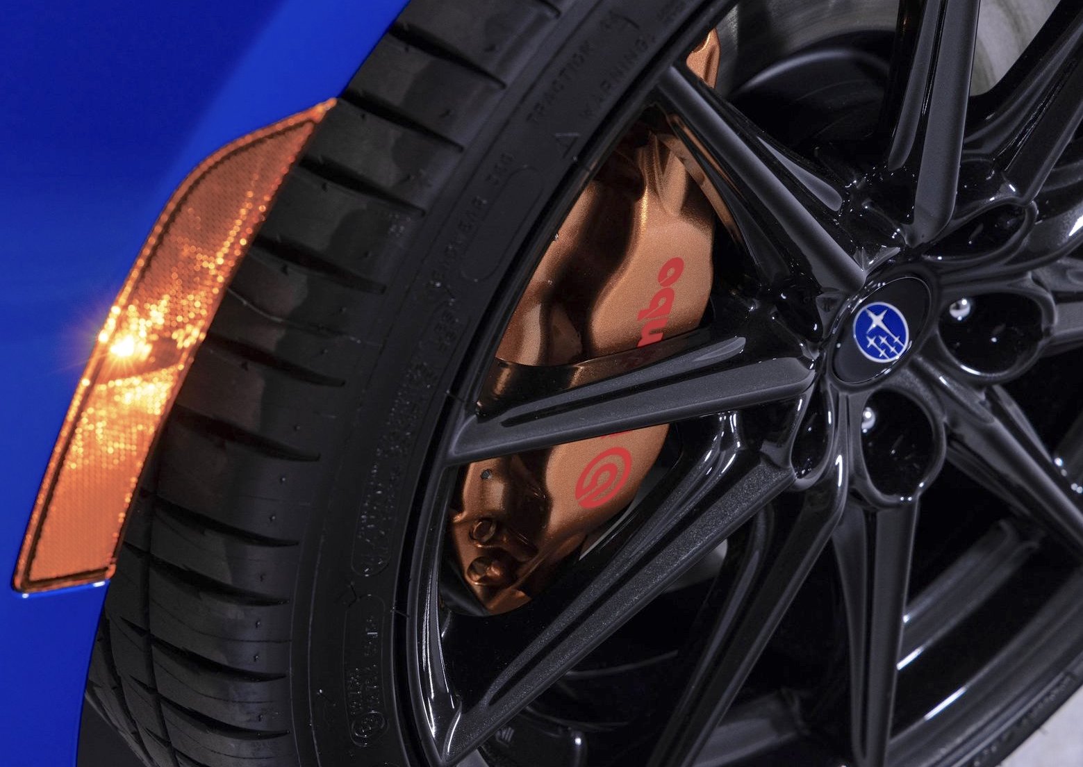 PRESS RELEASE: A high-performance Brembo braking system, including gold-painted 4-piston front calipers, gold-painted 2-piston rear calipers and larger pads and rotors, enhances stopping power, fade resistance and pedal feel.