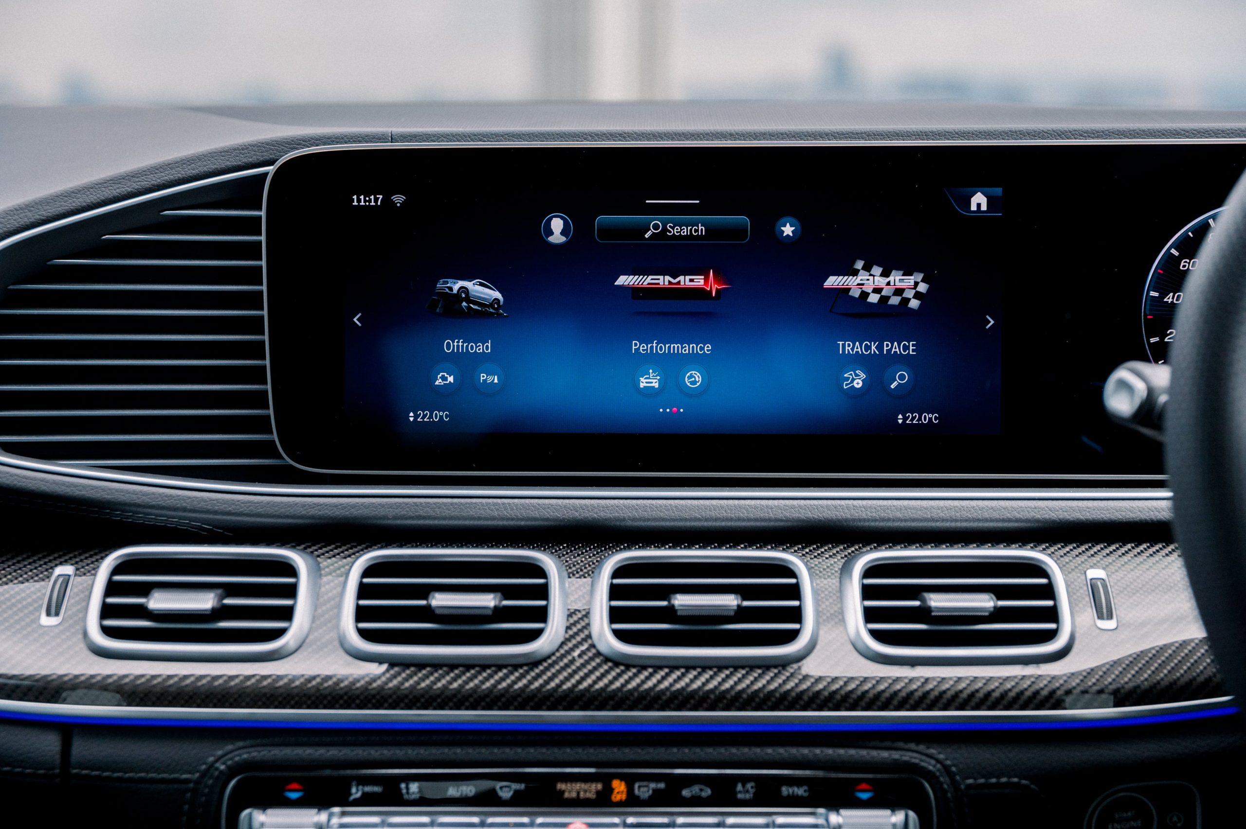 Other key technical highlights within the cabin of the GLE53 come from its heads up display, Burmester 3D surround sound system, 4-zone THERMOTRONIC automatic climate control and temperature-controlled cup holder in the centre console. Ambient lighting with animated projection of the AMG logo when the doors are open meanwhile adds a little bit of sporting flair to the proceedings, which are further accentuated by an AMG Performance steering wheel finished in Nappa leather, AMG Nappa leather black upholstery, AMG carbon-fibre trim as well as AMG floor mats.