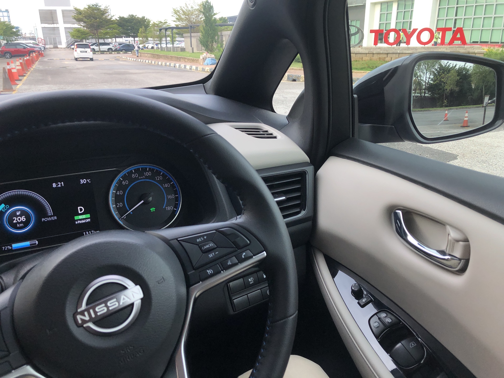 Behind the wheel, this Nissan Leaf offers a smooth and quiet ride, characteristic of electric vehicles.