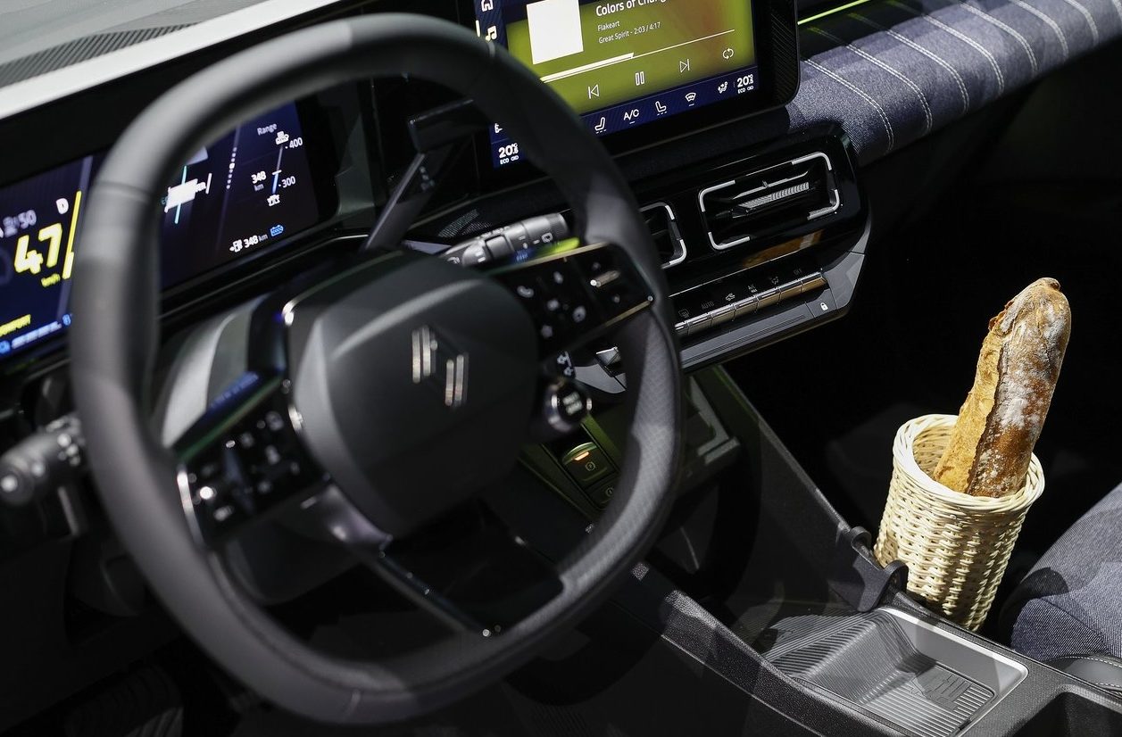 Oh, and the fun doesn’t stop there too, as turning towards the cabin of the Renault 5, there is not just the option to line its seats and dashboard in a vibrantly yellow fabric, but more French too is a gear lever knob inspired by a classic lipstick tube and the availability of a wicker baguette holder by the centre console. Another more discrete callback to its namesake predecessor within this EV is with the quilted headliner, while the twin 10-inch instrument and infotainment display running Google-developed operating system places this hatchback firmly in the modern era.