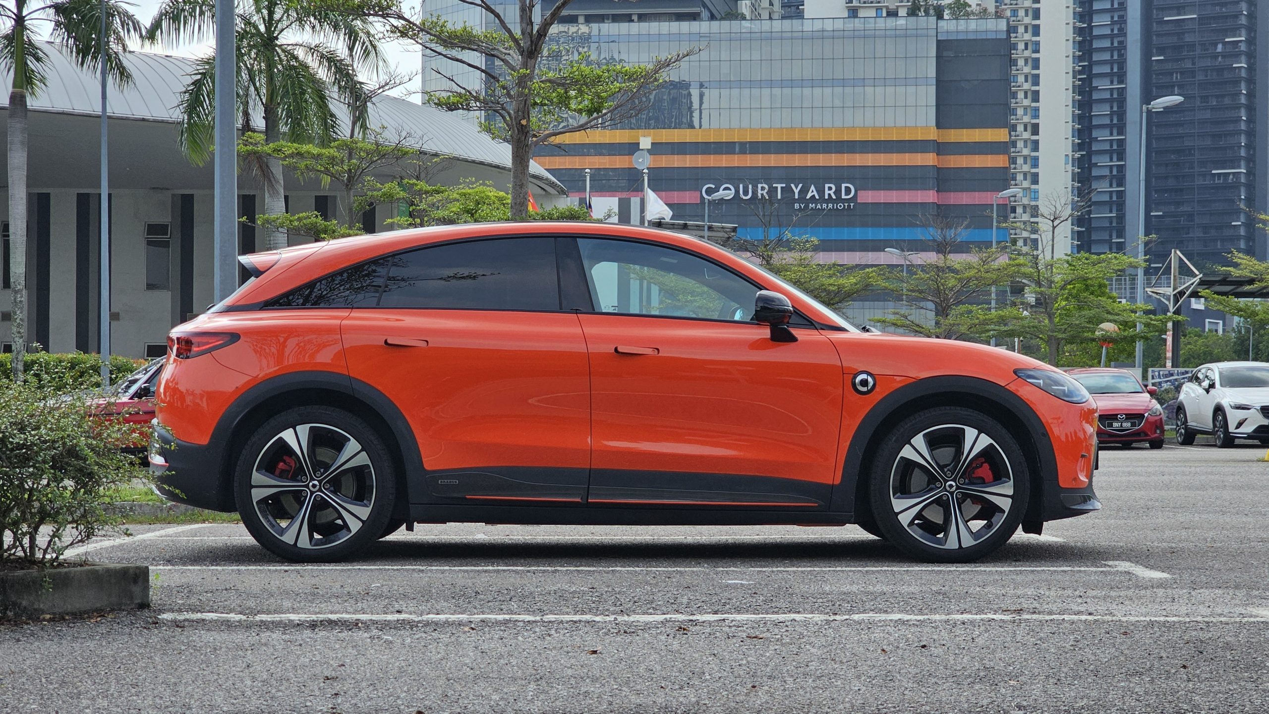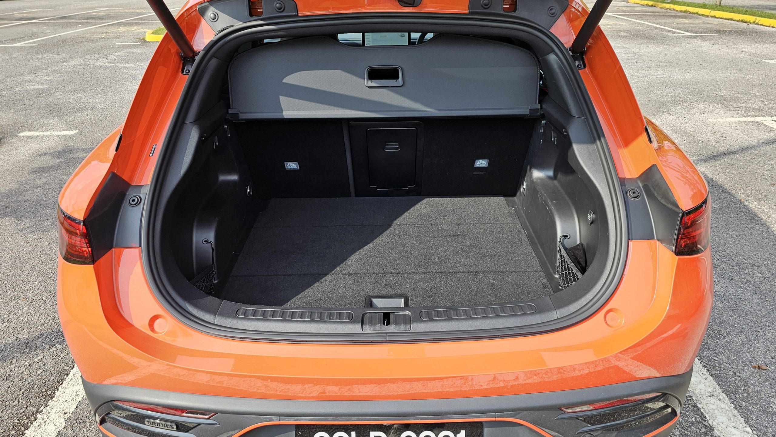 The BRABUS trim also incidentally gains a few sporty touches over the Pro as well, like suede on its steering wheel and sports seats, for instance, for that racier vibe within. Larger 20-inch wheels, a front hood scoop, and a more prominent rear spoiler on the outside, meanwhile, add that little bit of extra menace to what is a rather sleek and sexy looking car (with it really standing out in a crowd when painted in this vibrant shade of orange on this test car here).