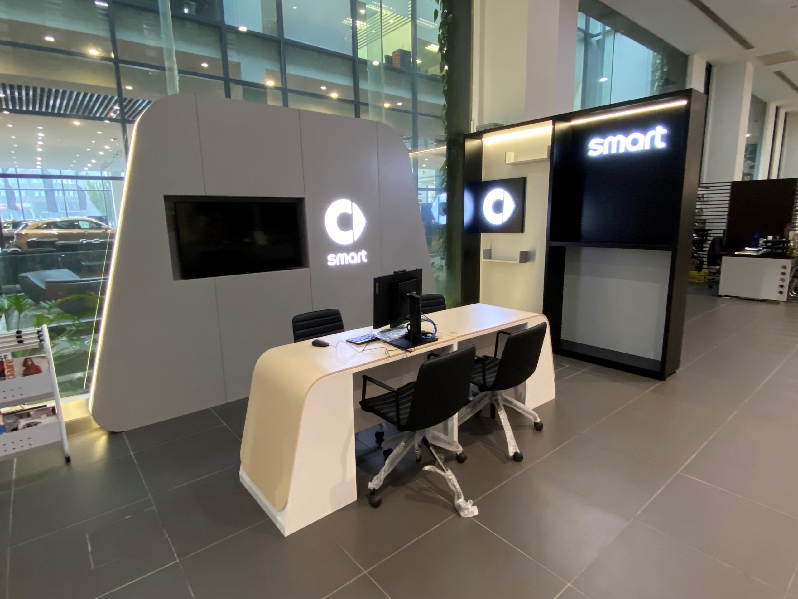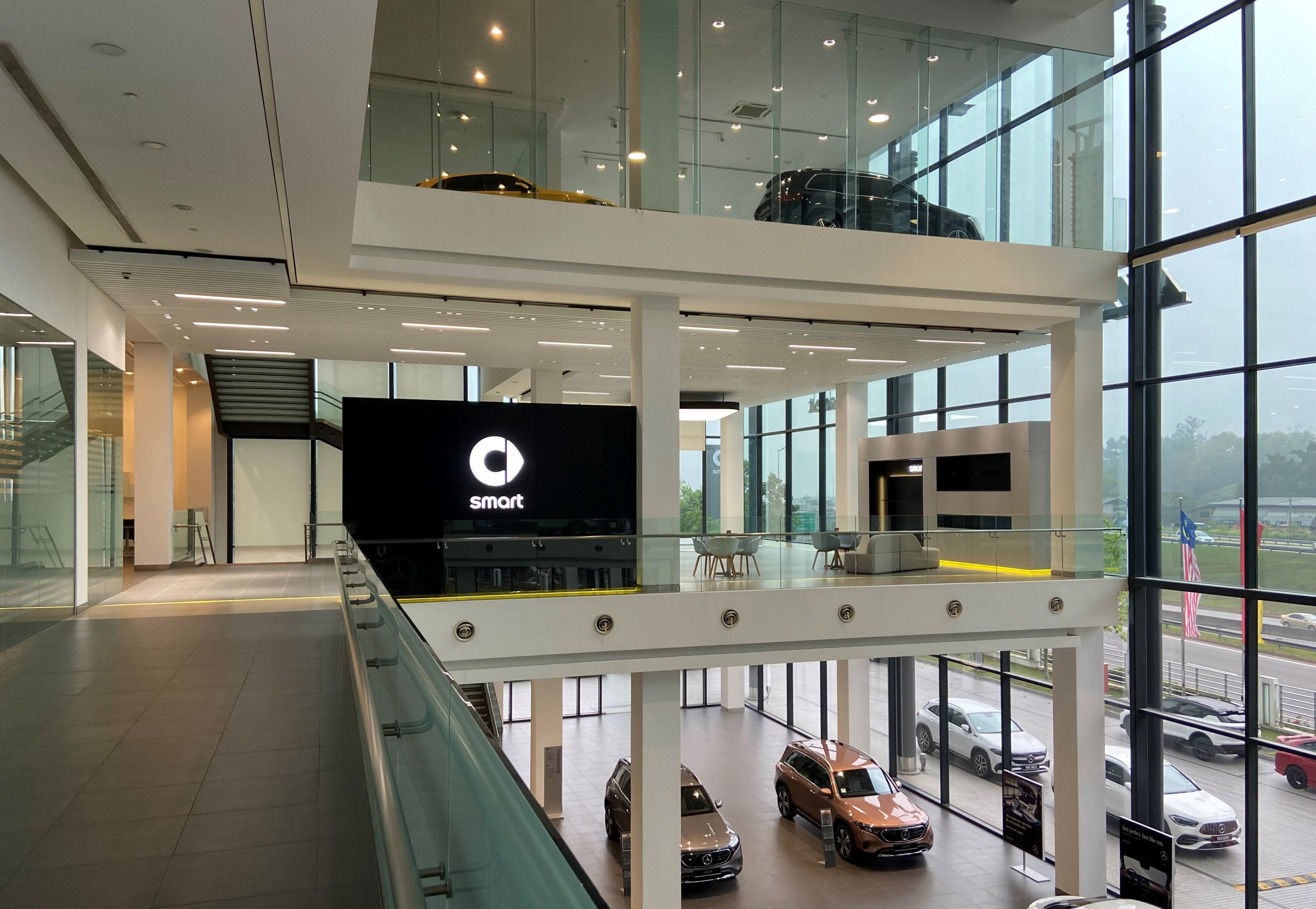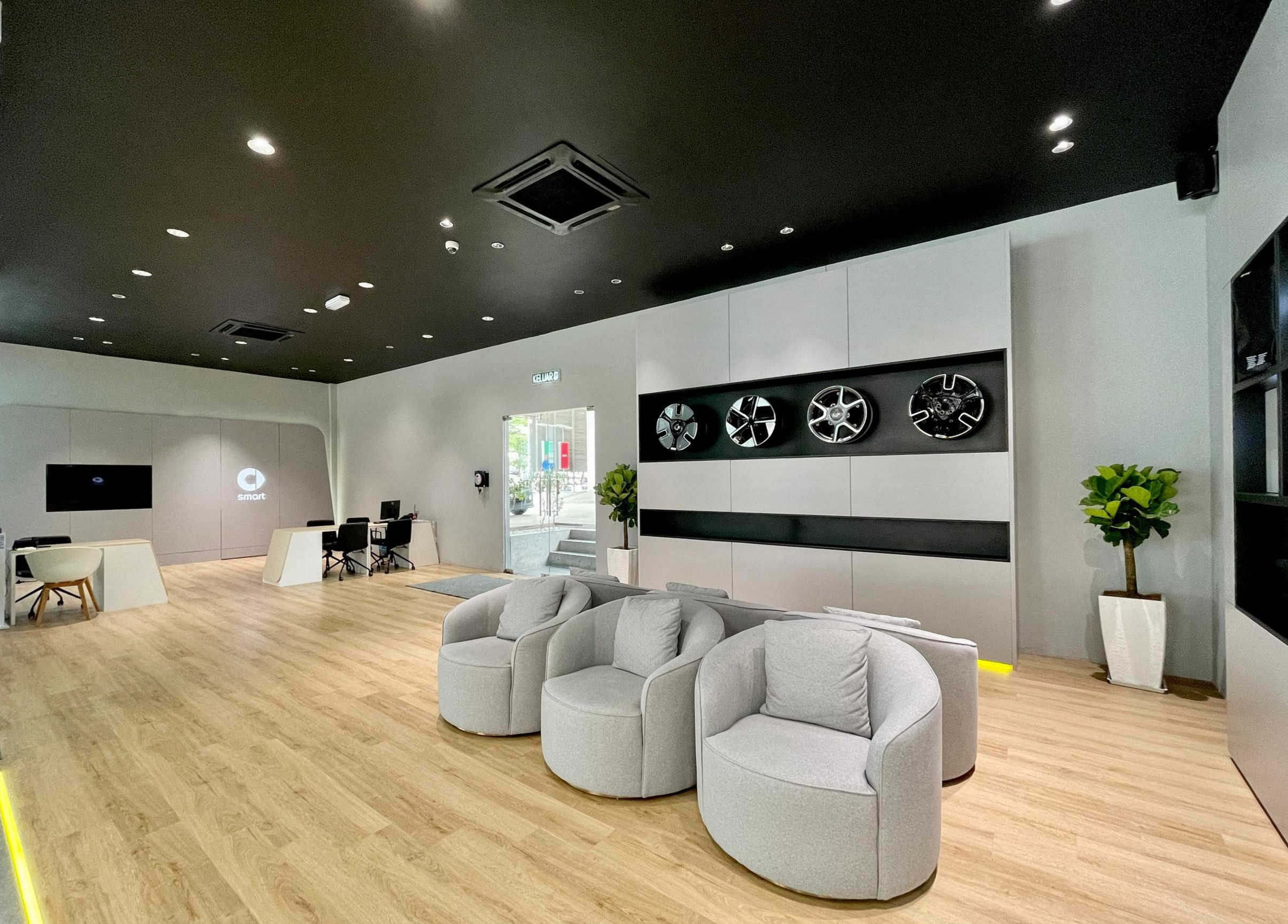Nestled in the heart of Kuala Lumpur, the Hap Seng smart outlet boasts a sleek and modern environment to showcase two units of the smart #1. Complemented by two service bays located in smart Jalan Ipoh and two AC chargers for public use, this outlet provides urban customers with a convenient location to explore the future of electric mobility. The outlet features a built-up area of 700 m² and is seamlessly integrated with a Mercedes-Benz dealership.