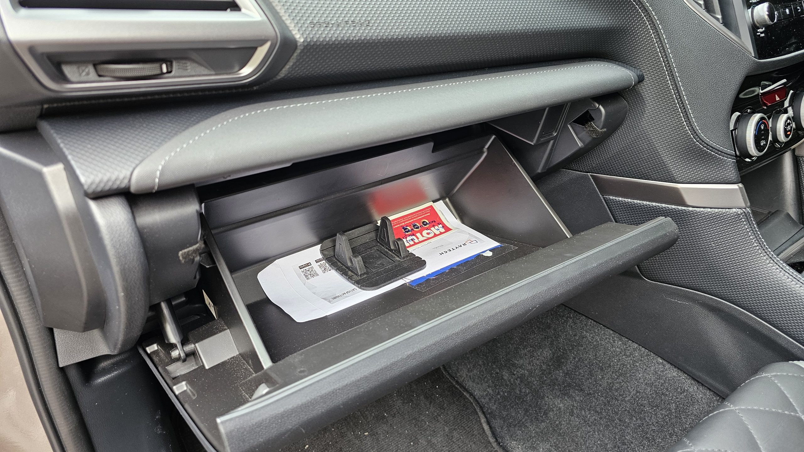 - That little shelf in the Forester’s centre console cubby seems useless at first, but just the right size for a new-gen Smart Tag.