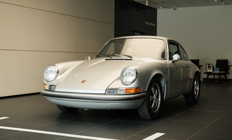 In discussing a little bit more about the car meanwhile, the 911T — the “T” stands for *Touring*, by the way — was first launched in 1967 as the entry-level variant of the 911 range, sitting below the 911 E and 911 S. The “2.2” badge on its rear windscreen identifies this particular example as the later circa-1970 model, powered by a 2.2-litre flat-six that produced 125 PS in period.
