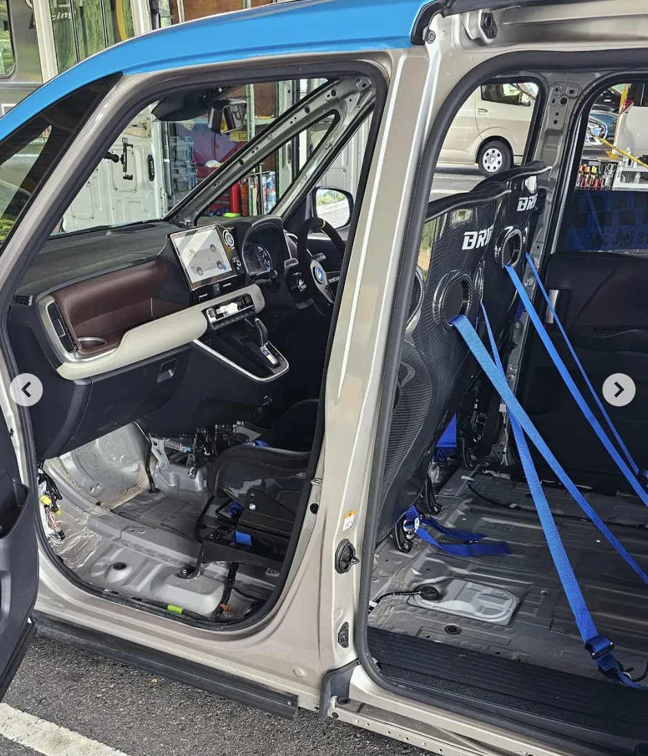 Unfortunately, details on what exactly has been done to transform this Noah into a gravel-slinging machine are somewhat thin on the ground. But even with just the handful of photos floating around, this MPV nevertheless shows itself to be a true blue motorsports machine (not least because of its literal blue-black racing livery)