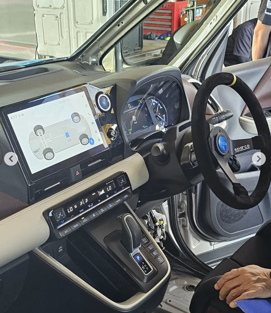 With regards to what lies under the hood of this rallified MPV, the “B” on the still-stock gear lever hints that this Noah is in fact a hybrid, which in its stock form at least sees a 1.8-litre naturally aspirated four-cylinder paired with an electric motor under the hood, for a modest combined output of 140 PS. From the energy flow diagram on the central screen too, there interestingly shows no arrow to the rear axle, meaning this rally-prepped MPV is running in the dirt with just front-wheel drive.