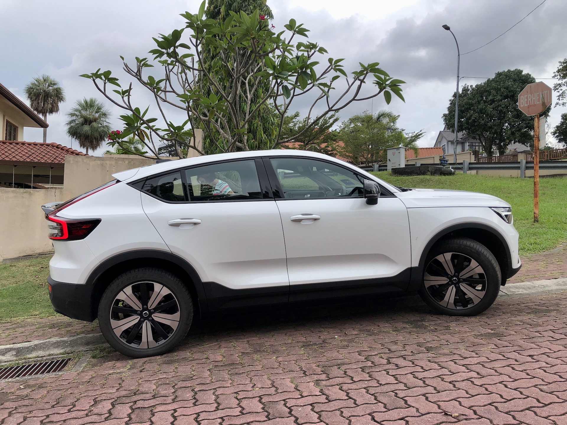 The Volvo C40 Recharge Pure Electric has an output of 408hp and 660Nm of torque delivered through all four wheels for a 0-100km/h time of just 4.7 seconds. It has a range of 450km on a full charge.
