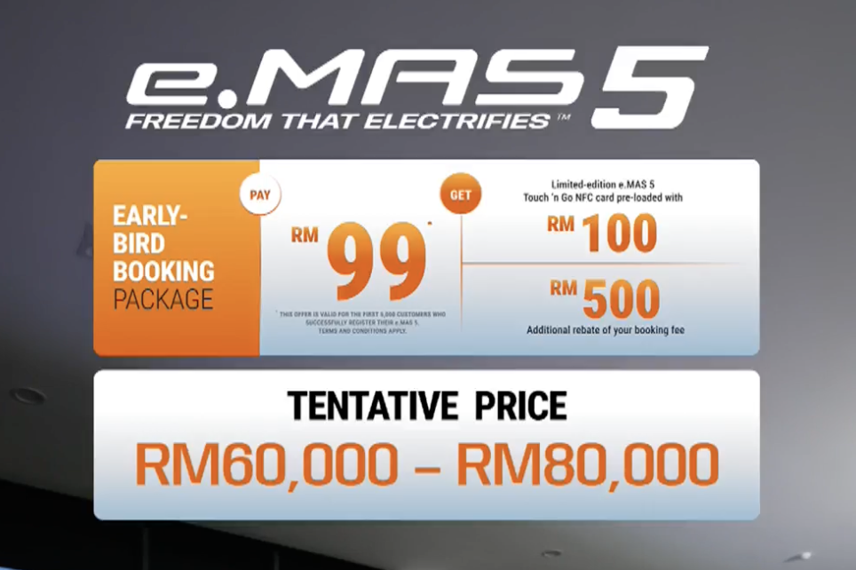 Bookings are now open at Proton e.MAS dealerships nationwide, with a refundable RM 99 booking fee.